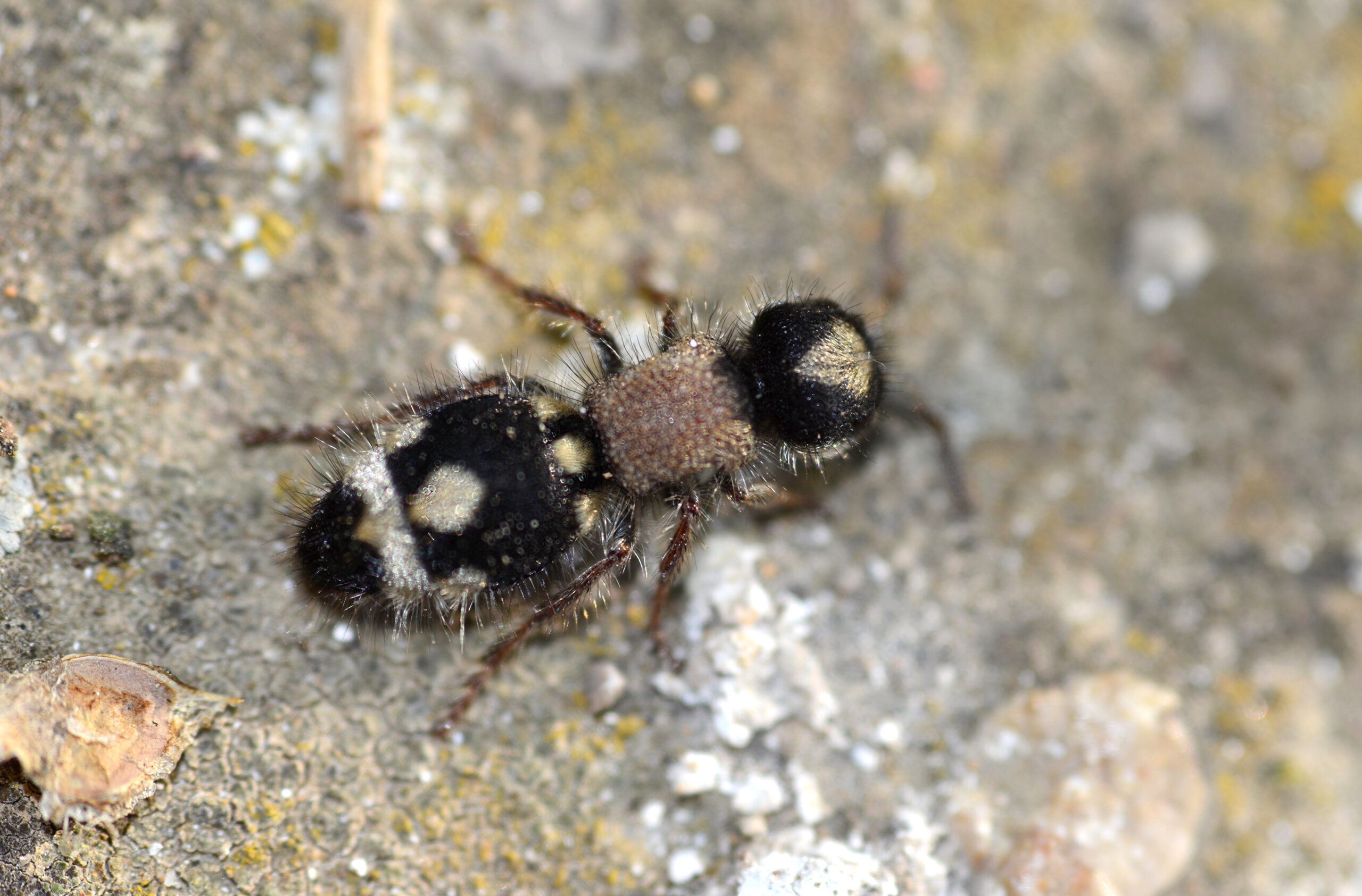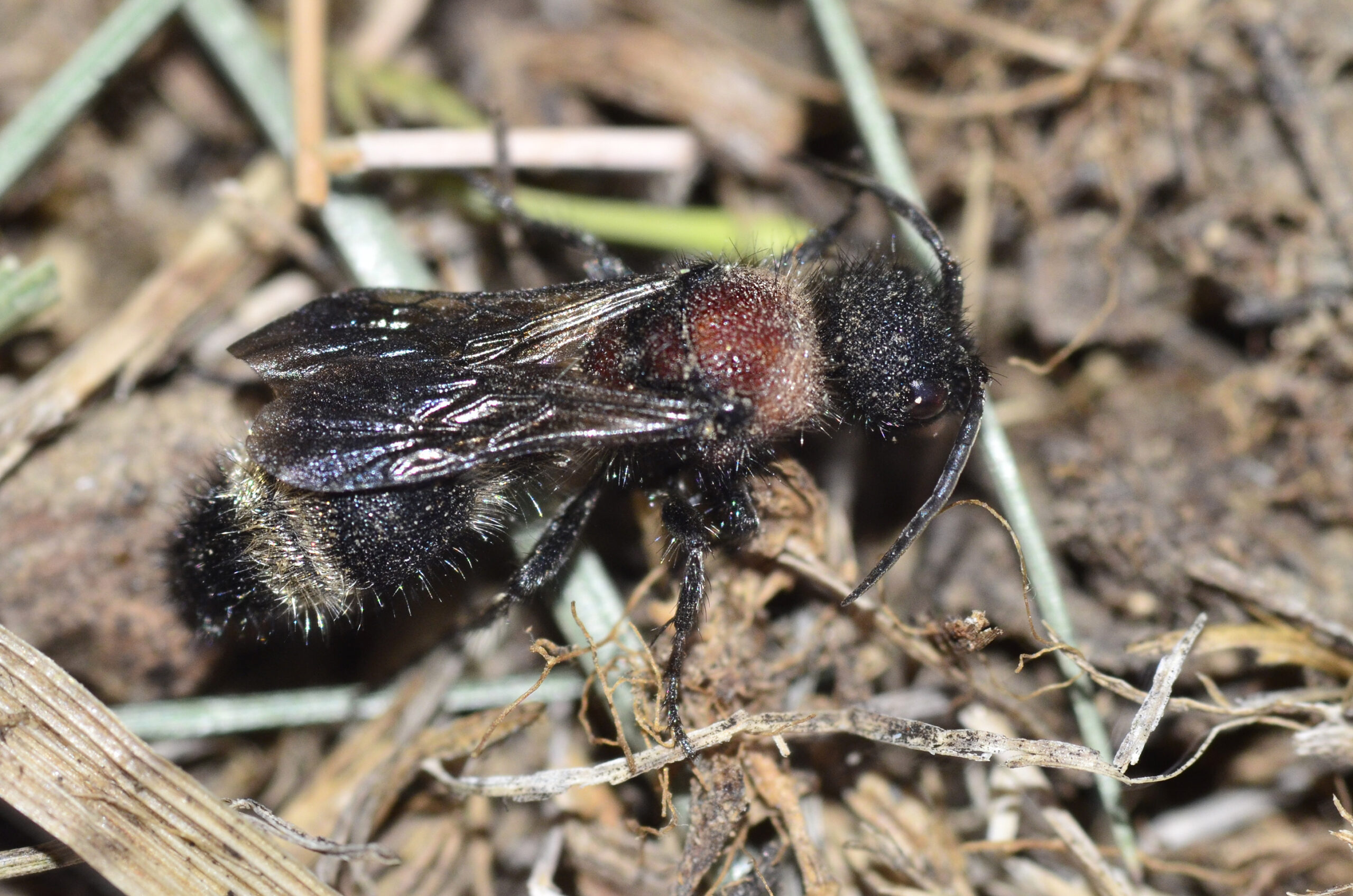 Abeja mutílido plateado u hormiga peluda (Stenomutilla argentata). Parque Natural del Peñagolosa, Villahermosa del Río (Castellón). España.