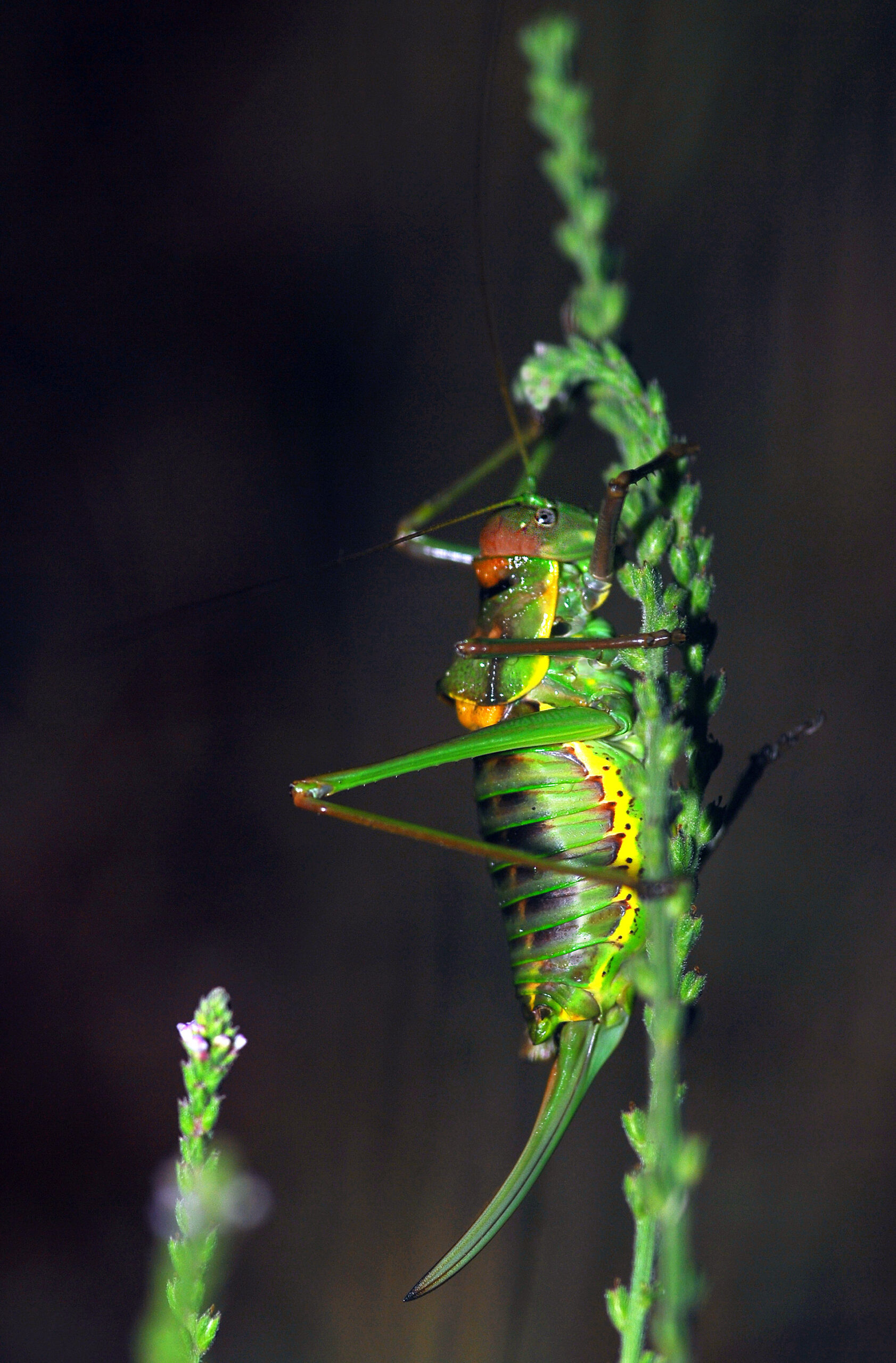 Saltamontes langosta verde (Tettigonia viridissima). Parque Natural del Peñagolosa, Villahermosa del Río (Castellón). España.