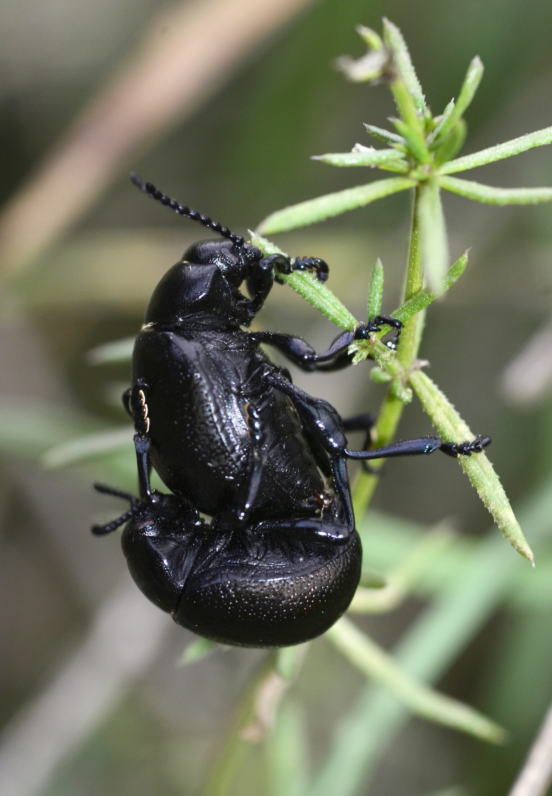 Escarabajo de nariz sangrante (Timarcha fallax), hembra. Parque Natural del Peñagolosa, Villahermosa del Río (Castellón). España.