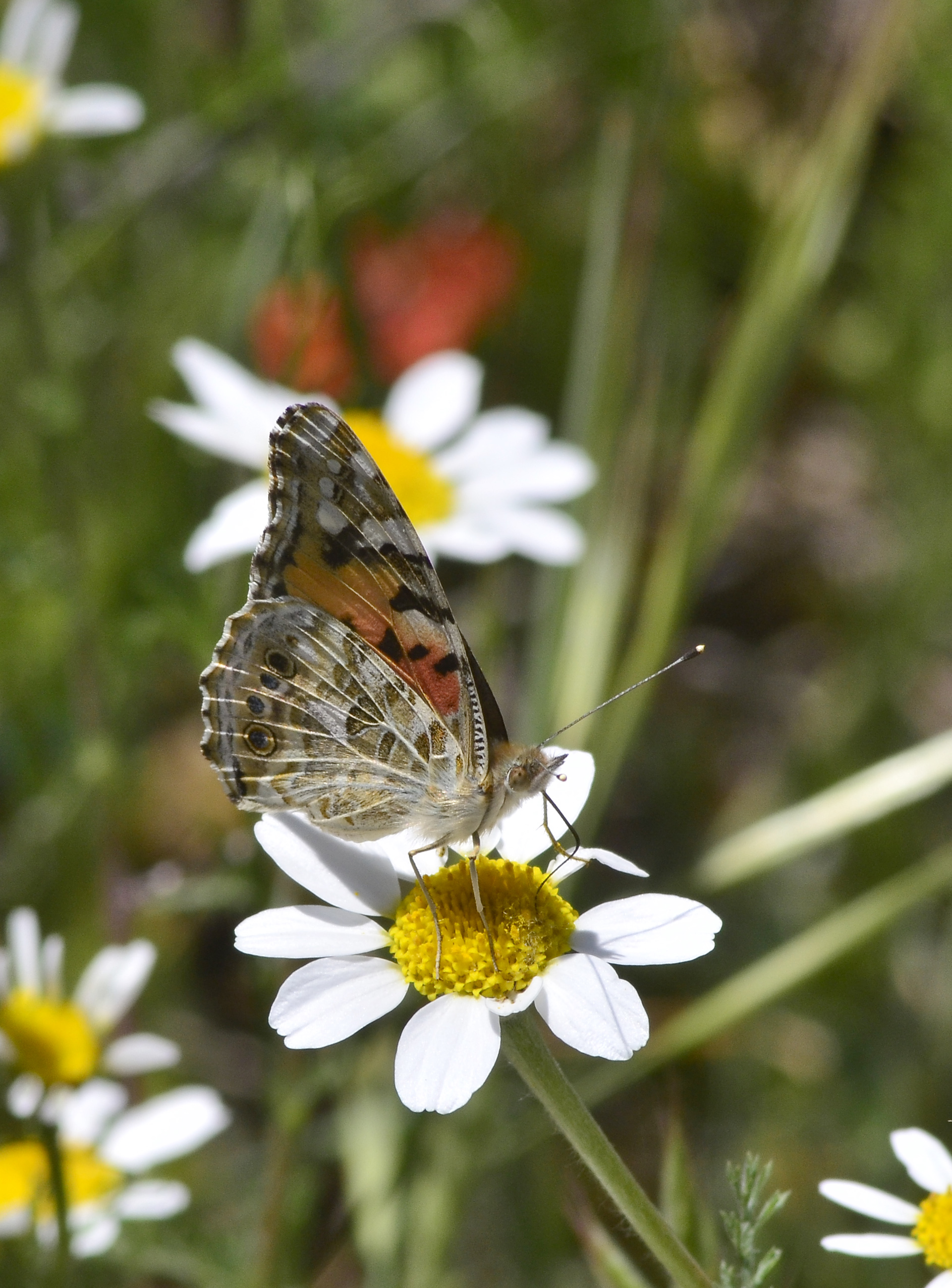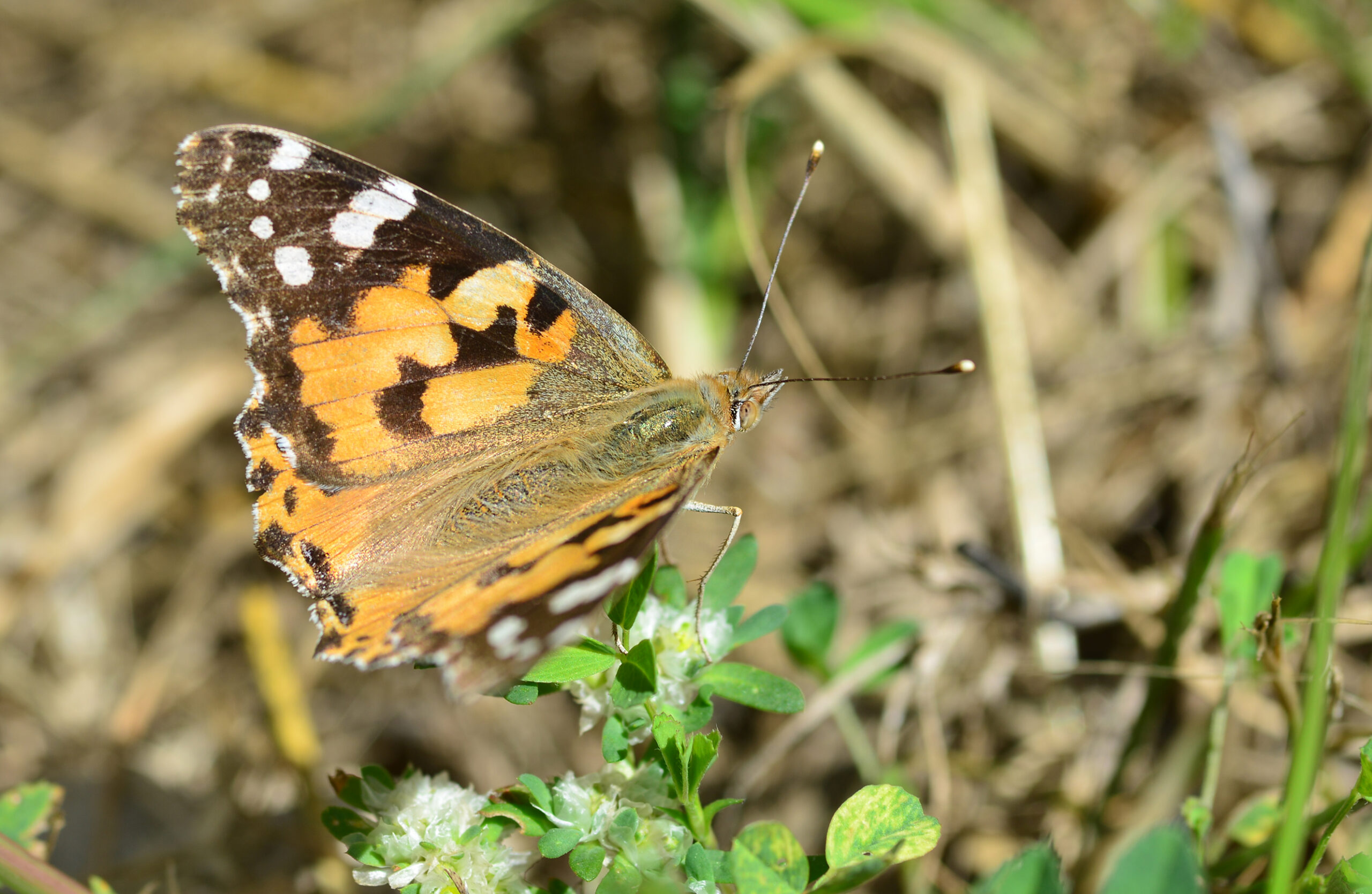 Mariposa vanesa de los cardos (Vanessa cardui). Parque Natural del Peñagolosa, Villahermosa del Río (Castellón). España.