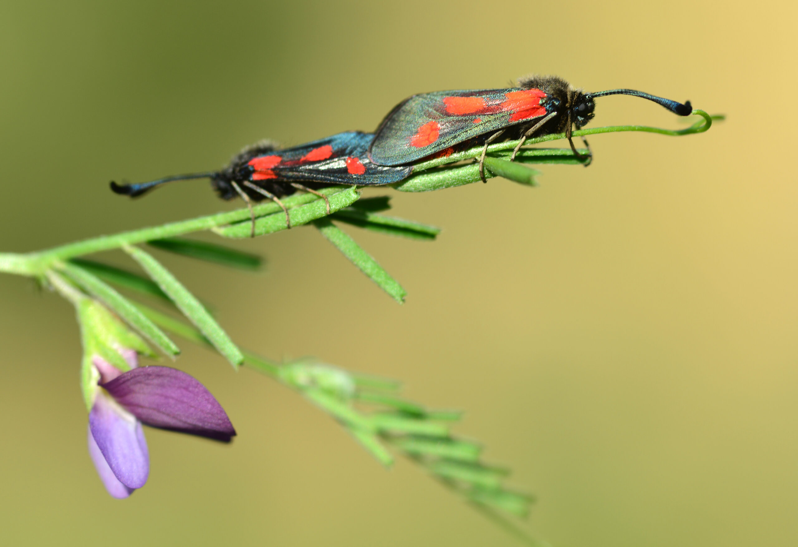 Mariposa zigena de los seis puntos (Zygaena filipendulae). Parque Natural del Peñagolosa, Villahermosa del Río (Castellón). España.