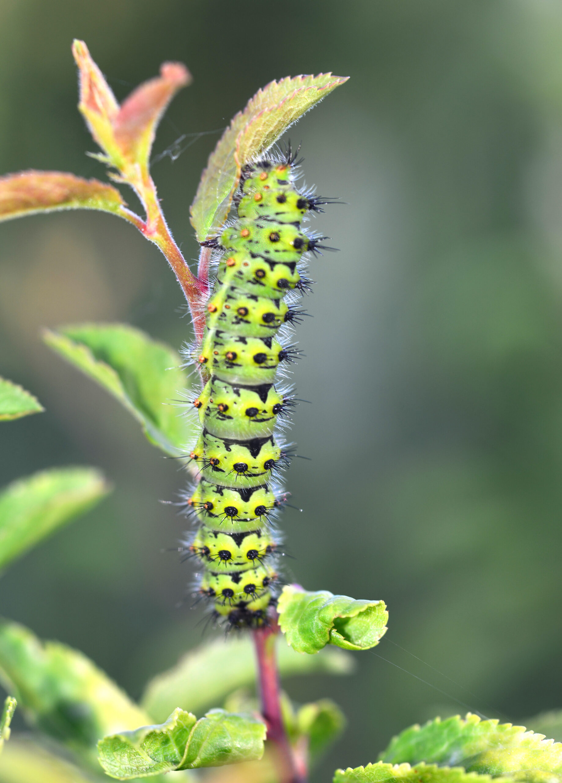 Mariposa pequeño pavón (Saturnia pavonia), oruga. Parque Natural del Peñagolosa, Villahermosa del Río (Castellón). España.