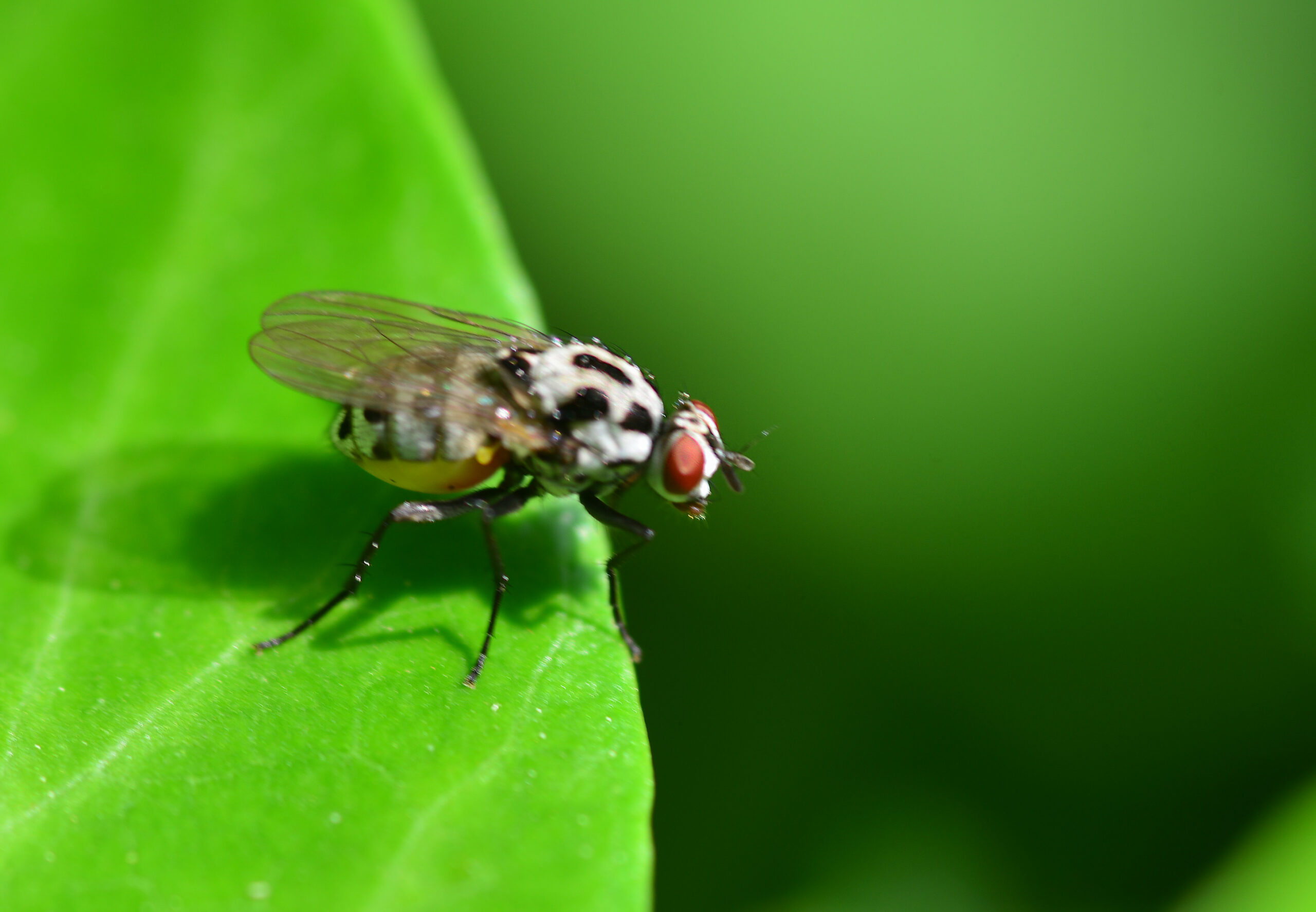 Mosca de la lluvia (Anthomyia pluvialis). Paraje de San Bartolomé, Villahermosa del Río (Castellón). España.