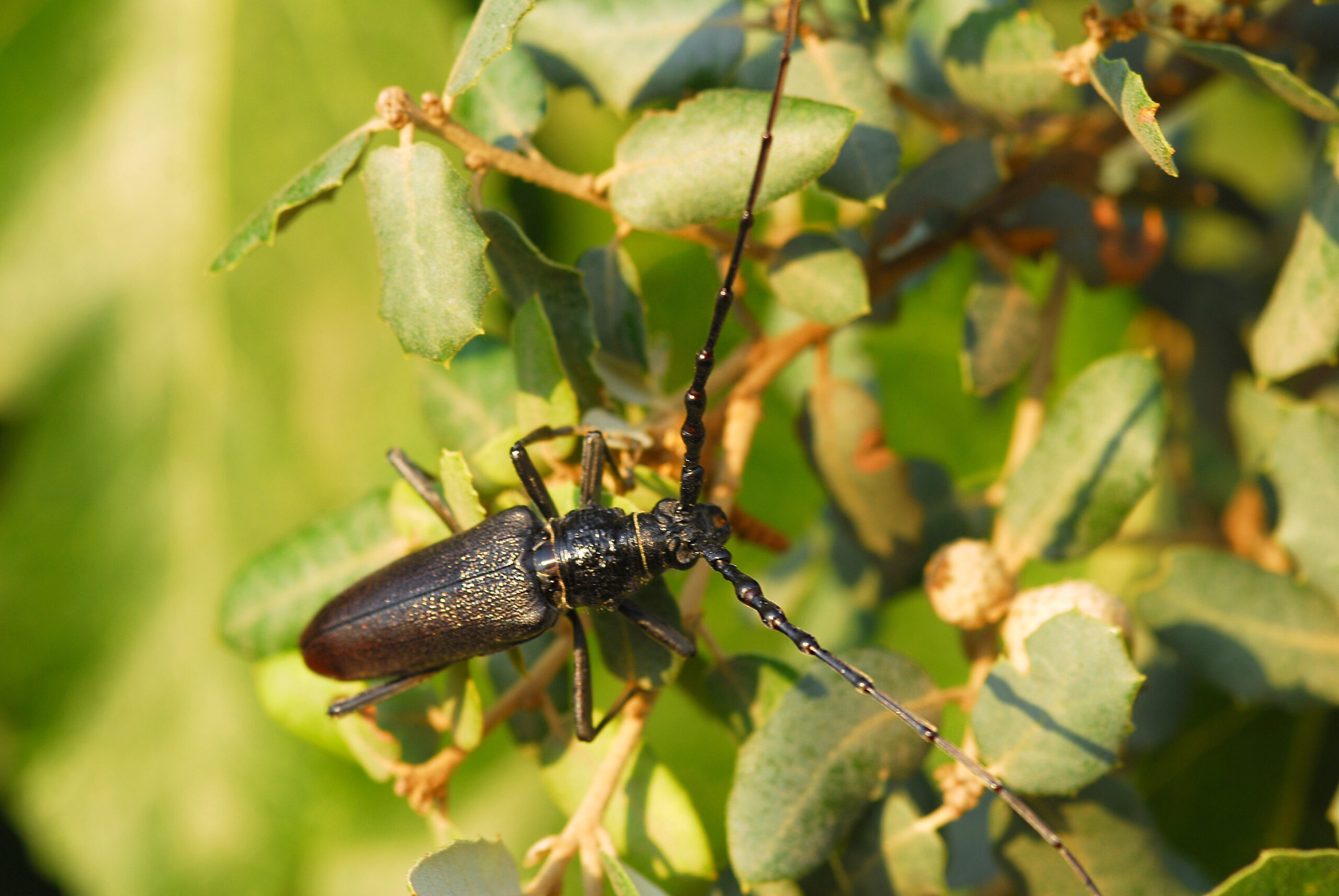 Escarabajo capricornio de las encinas (Cerambyx cerdo). Sierra de Espadán, Aín (Castellón), España.