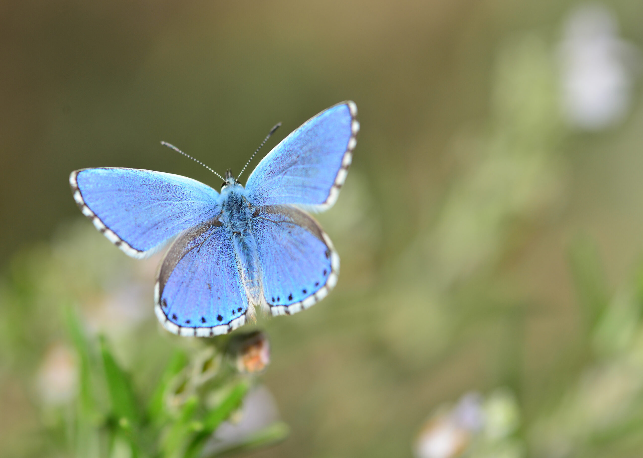 Mariposa niña celeste (Lysandra bellargus), macho. Parque Natural del Peñagolosa, Villahermosa del Río (Castellón). España.