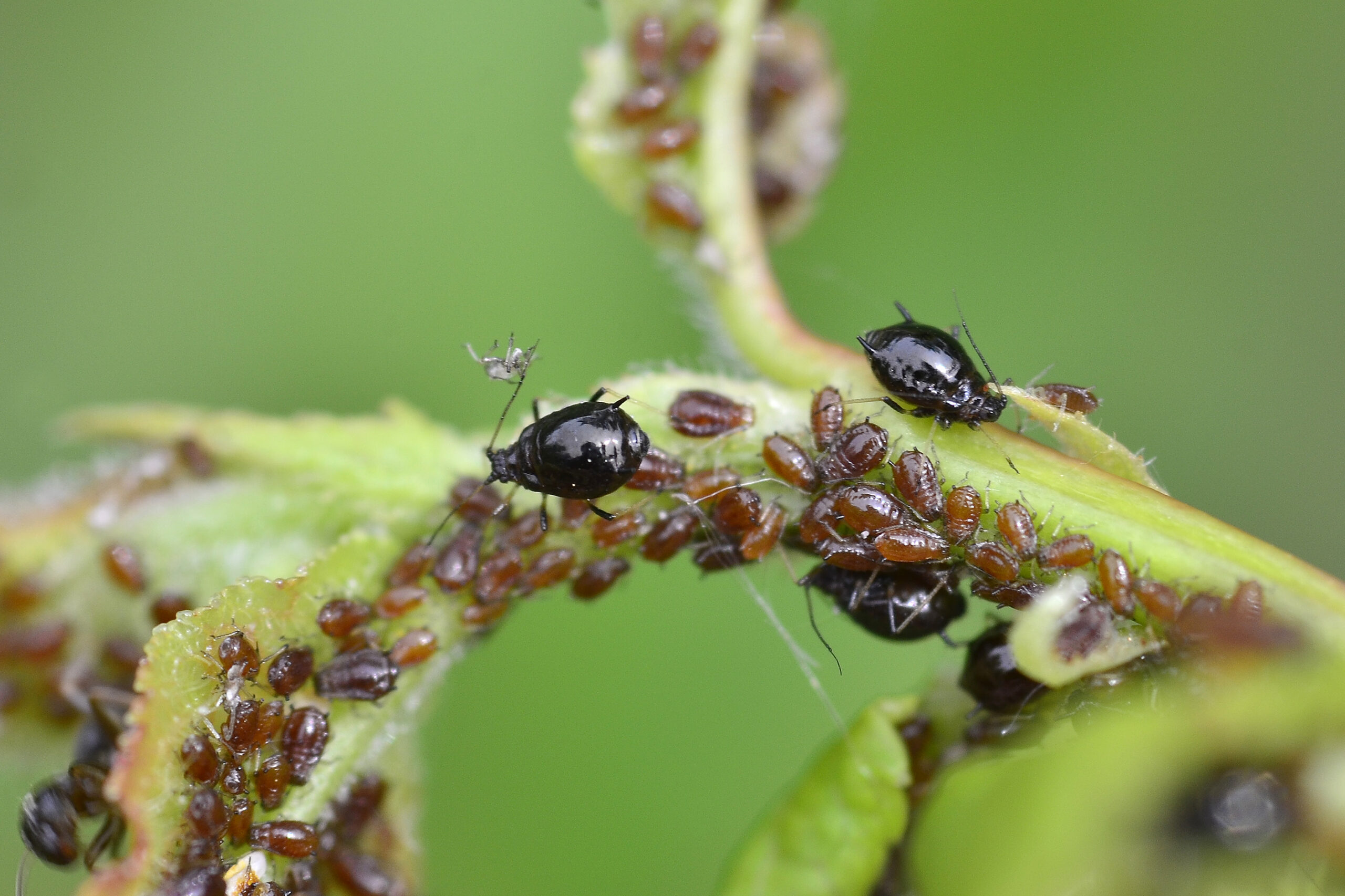 Pulgón negro del cerezo (Myzus cerasi). Paraje de San Bartolomé, Villahermosa del Río (Castellón). España.