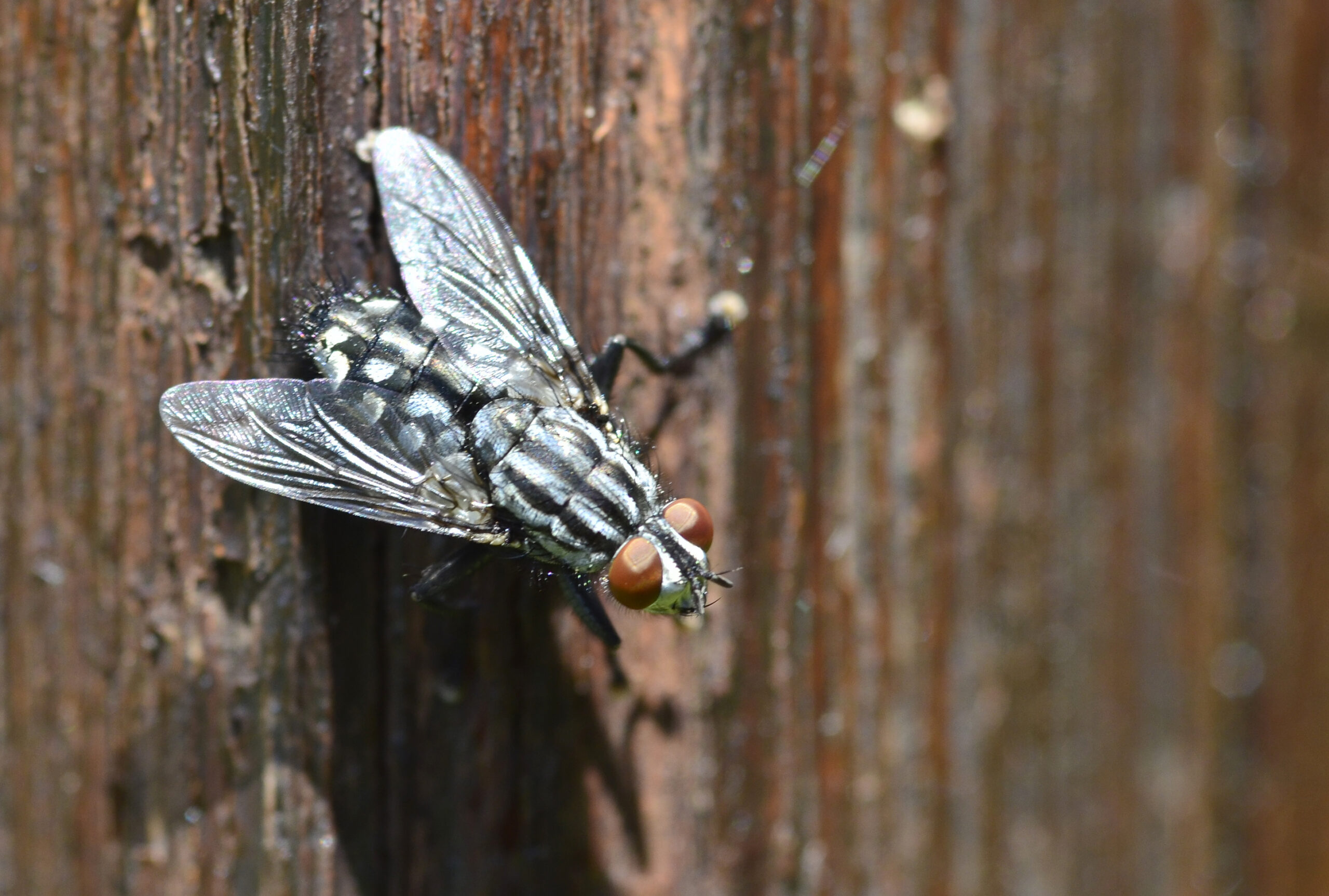 Mosca gris de la carne (Sarcophaga carnaria). Paraje de San Bartolomé, Villahermosa del Río (Castellón). España.