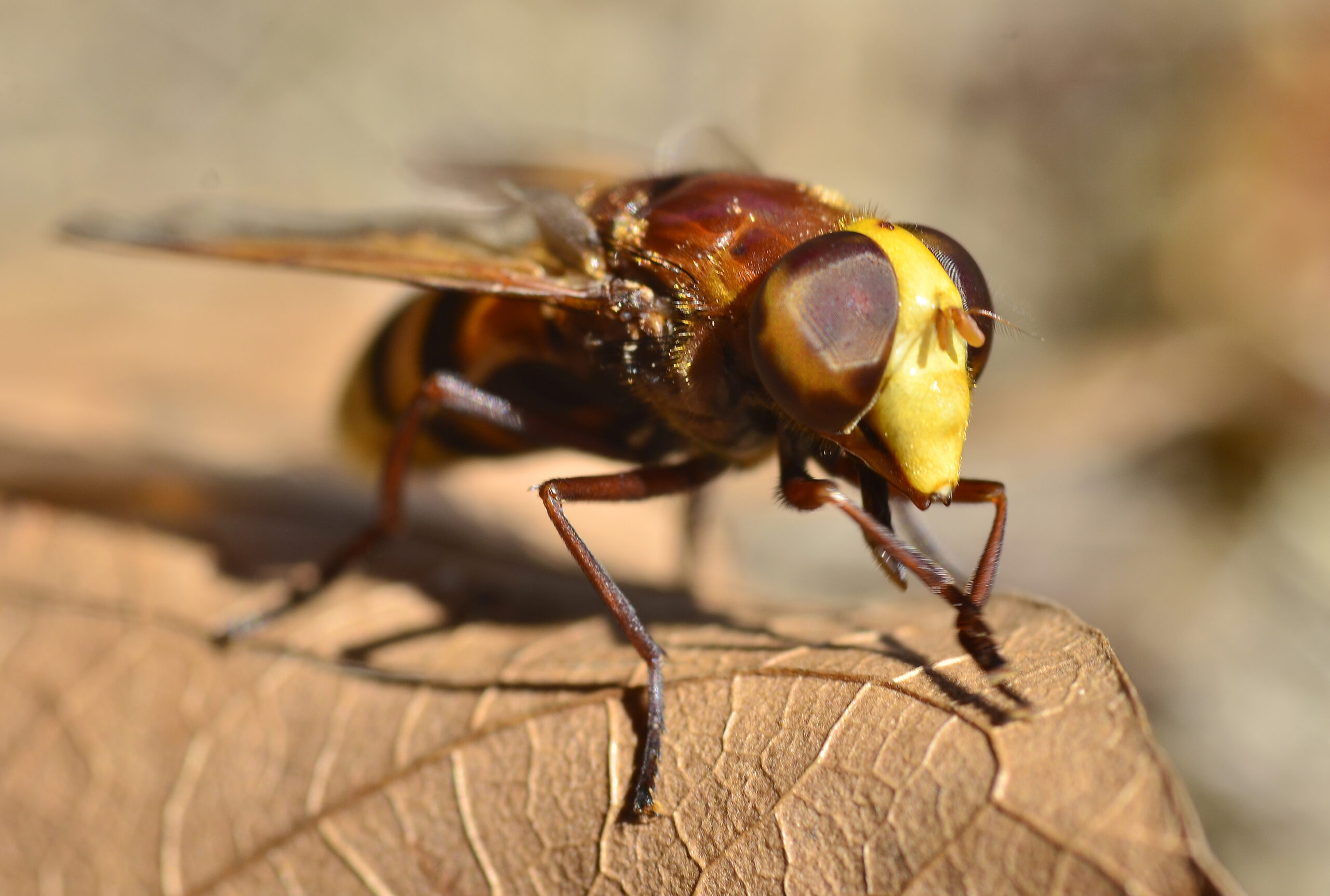 Mosca cernidora de las flores (Myathropa florea). Paraje de San Bartolomé, Villahermosa del Río (Castellón). España.