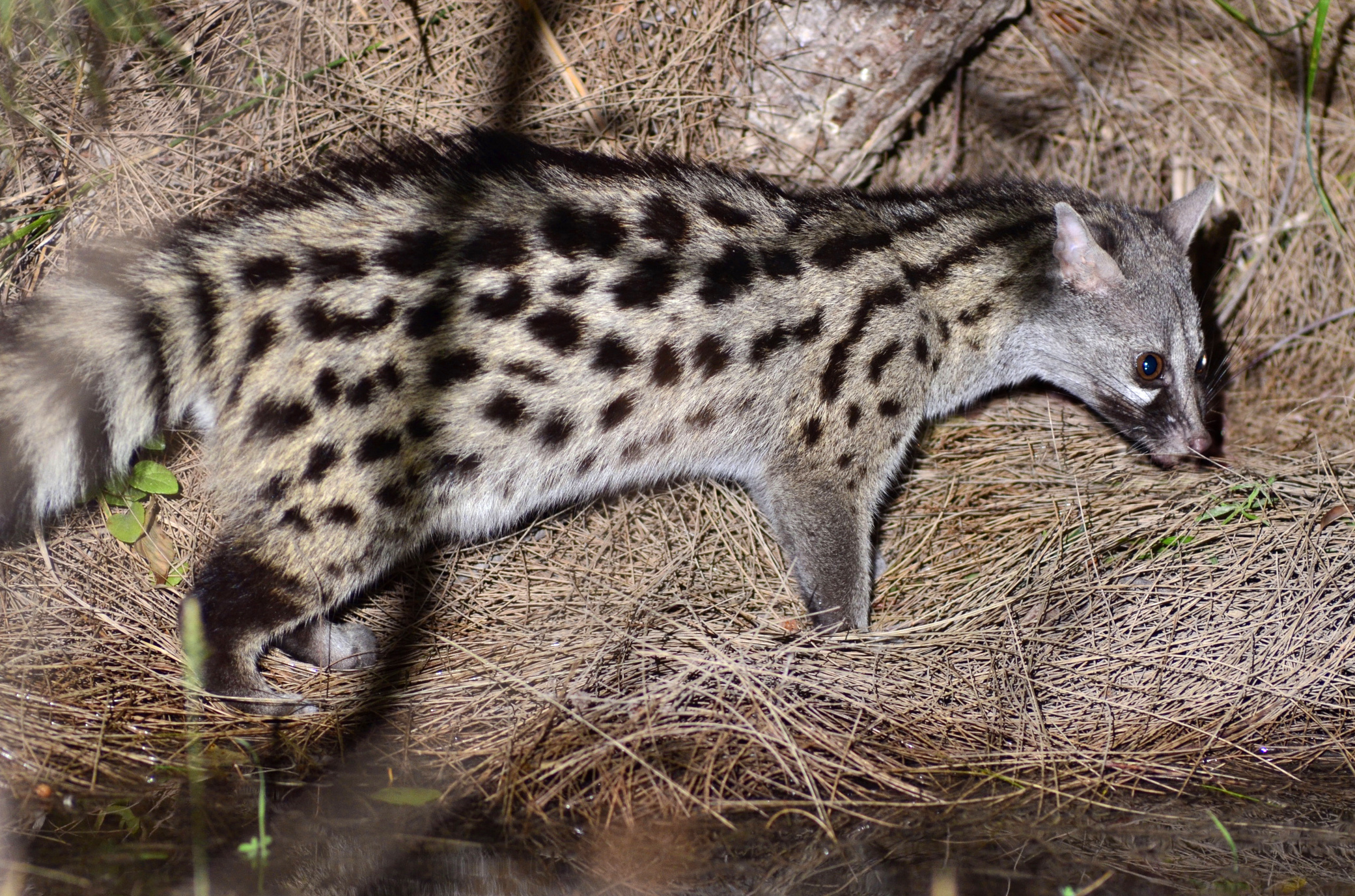Gineta común (Genetta genetta). Paisaje Protegido de la Desembocadura del río Millars, Vila-real (Castellón). España.