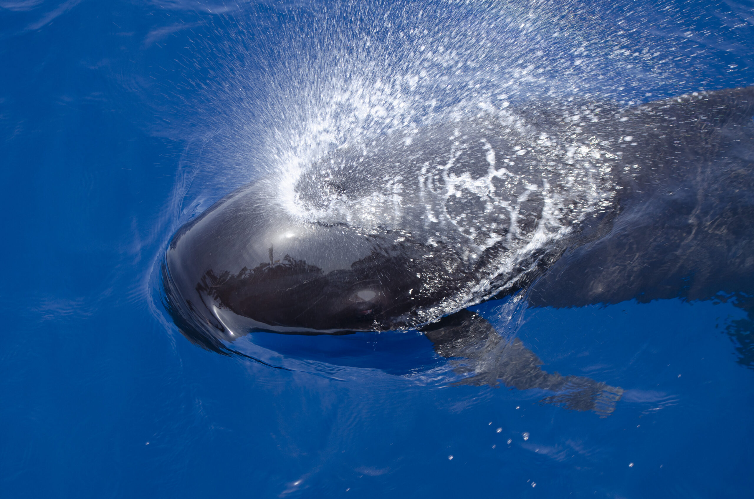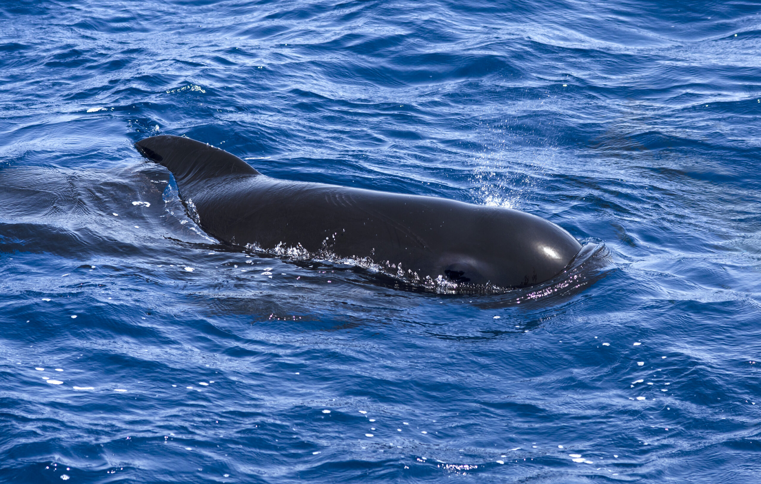 Calderón común (Globicephala melas). Reserva Marina de Cabo Tiñoso, Mazarrón (Murcia). España.