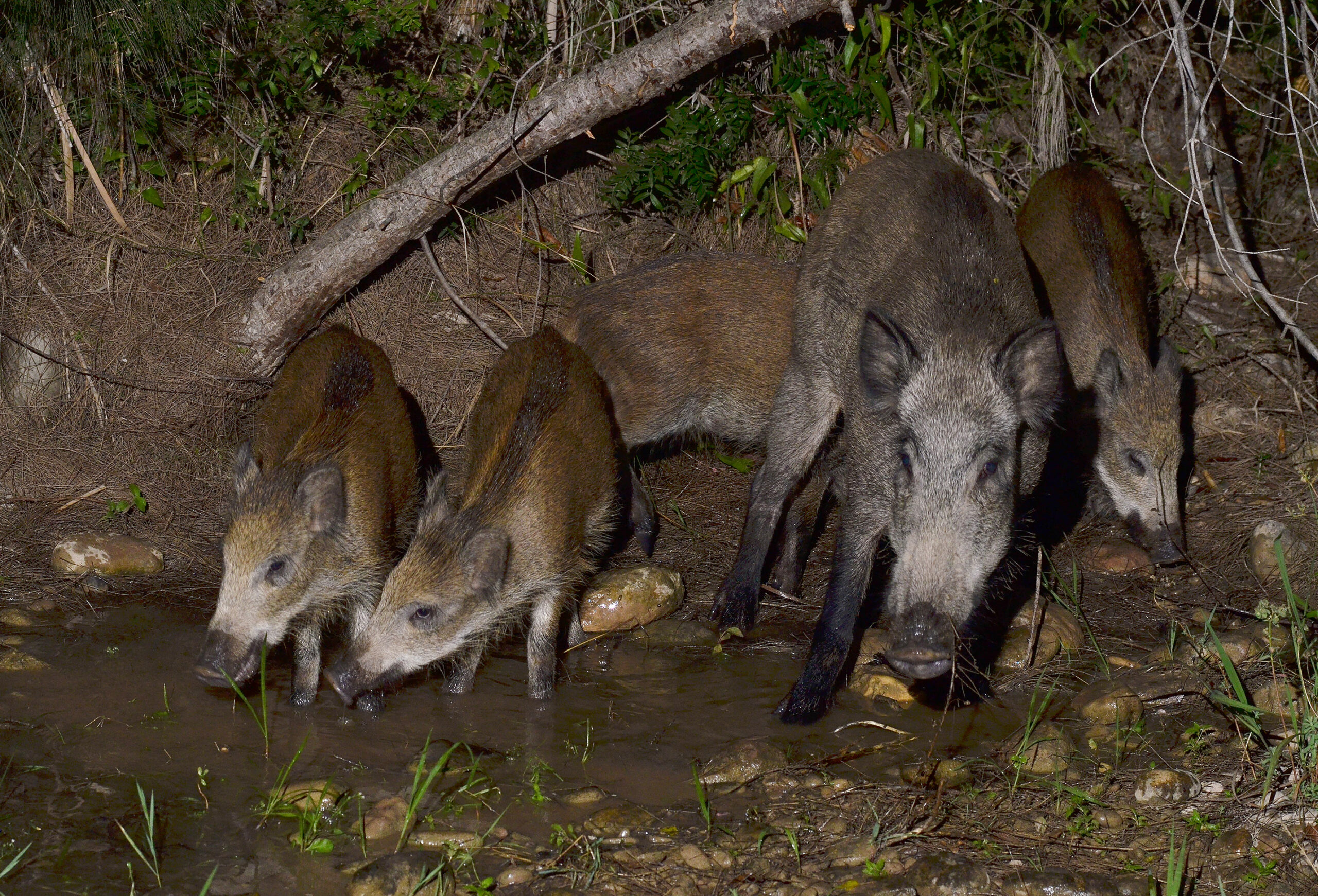 Jabalí europeo (Sus scrofa), rayones. Paisaje Protegido de la Desembocadura del río Millars, El Termet, Vila-real (Castellón). España.