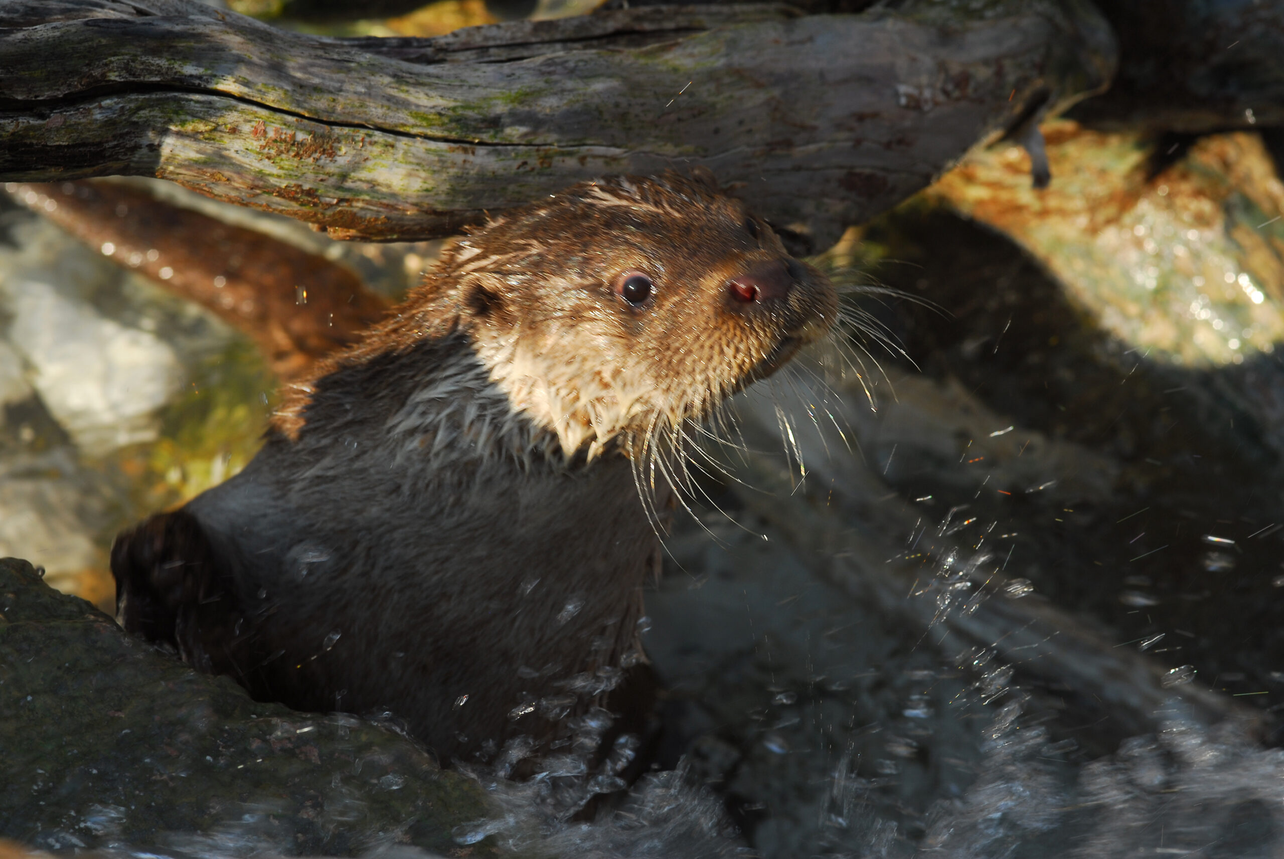 Nutria europea (Lutra lutra). Paisaje de la Desembocadura del río Millars, El Termet, Vila-real (Castellón). España.