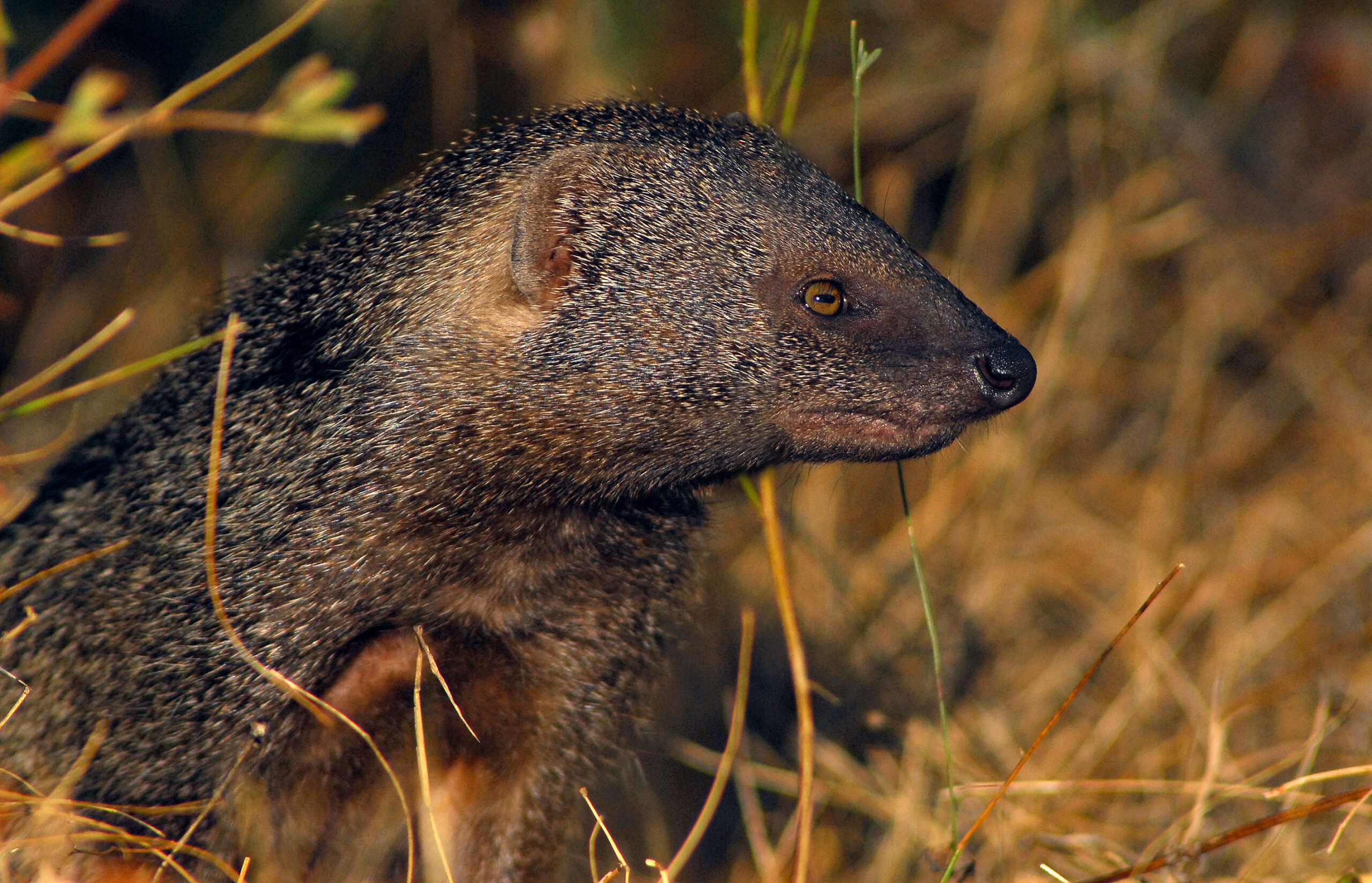 Mangosta común o meloncillo (Herpestes ichneumon). Parque Natural Sierra de Aracena y Picos de Aroche, Almonaster la Real (Huelva). España.