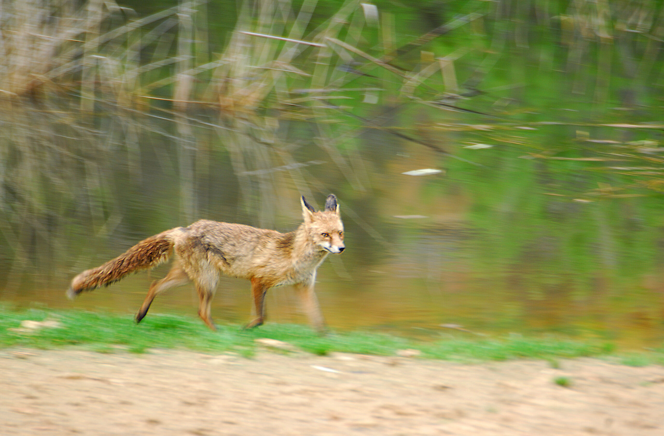 Zorro rojo (Vulpes vulpes). Paisaje Protegido de la desembocadura del río Millars, El Termet, Vila-real (Castellón). España.
