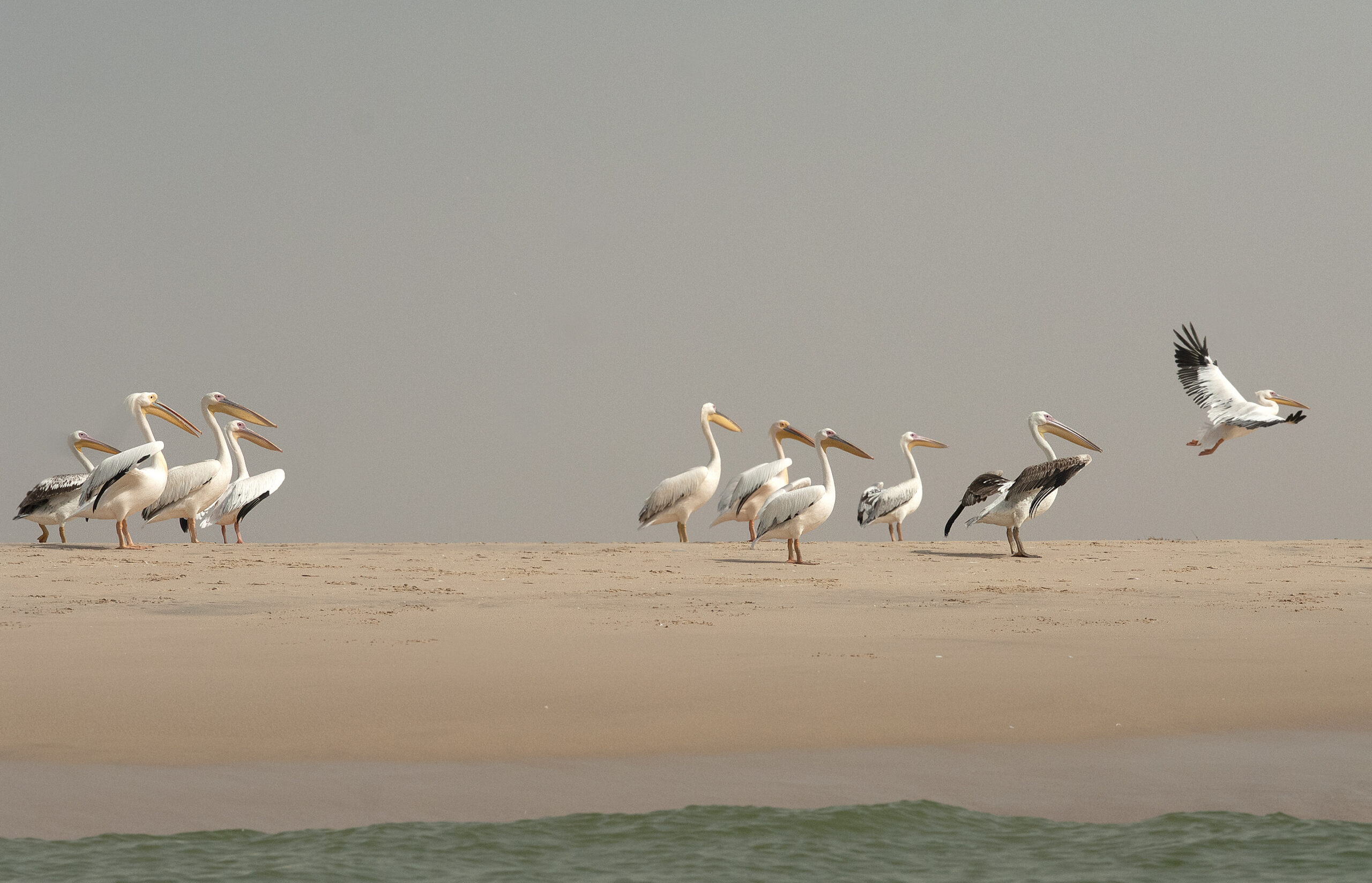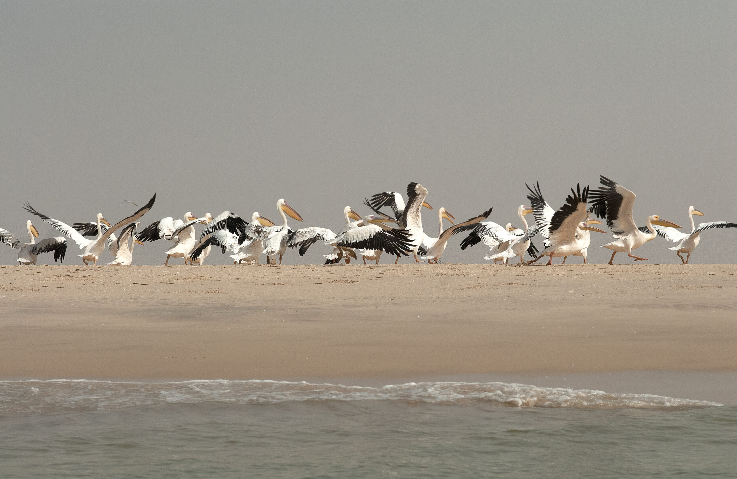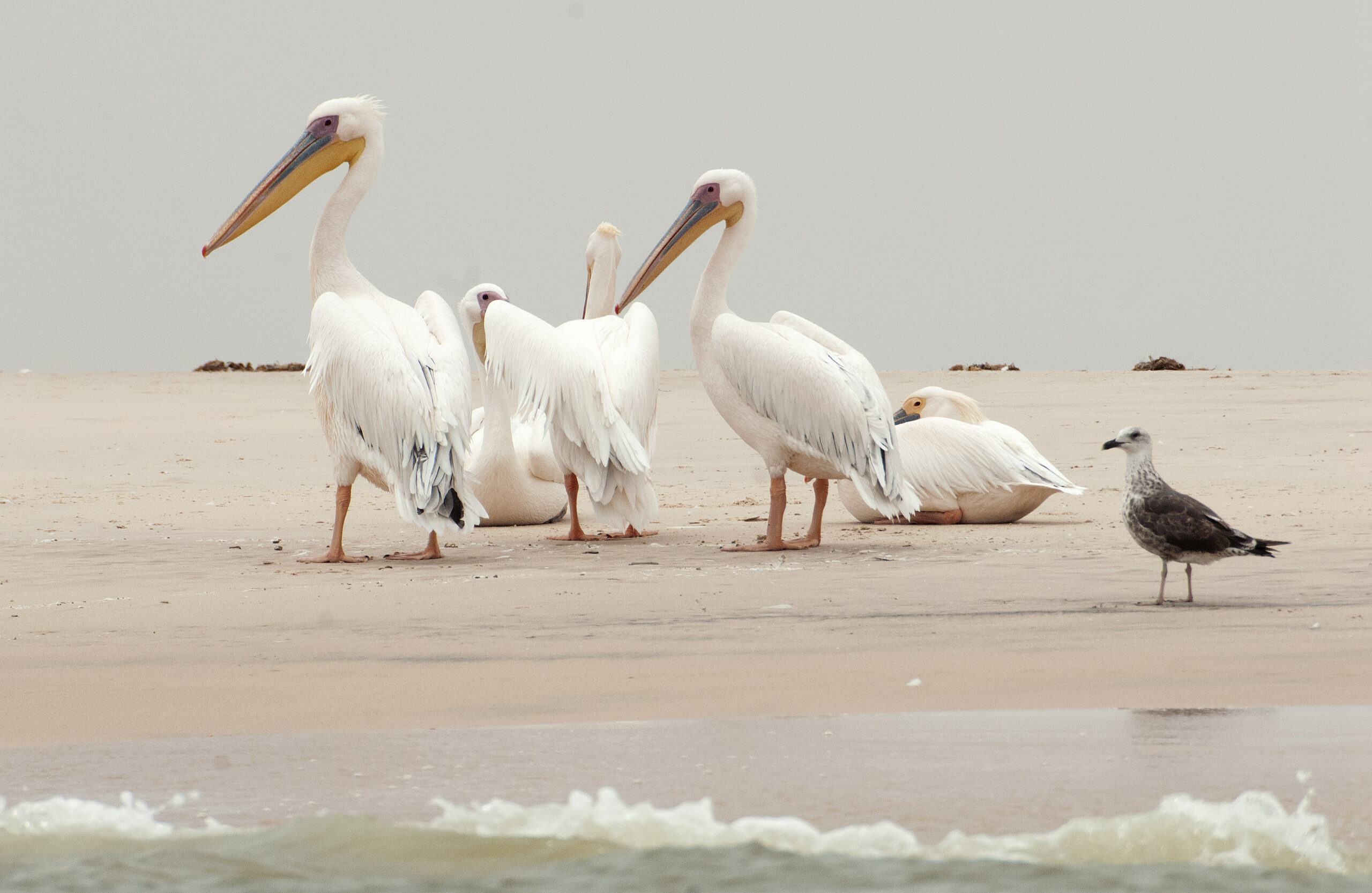 Mauritania. Aves. Pelícano blanco africano (Pelecanus onocrotalus). Dajlet Nuadibú. Reserva de la bahía de la Estrella.
