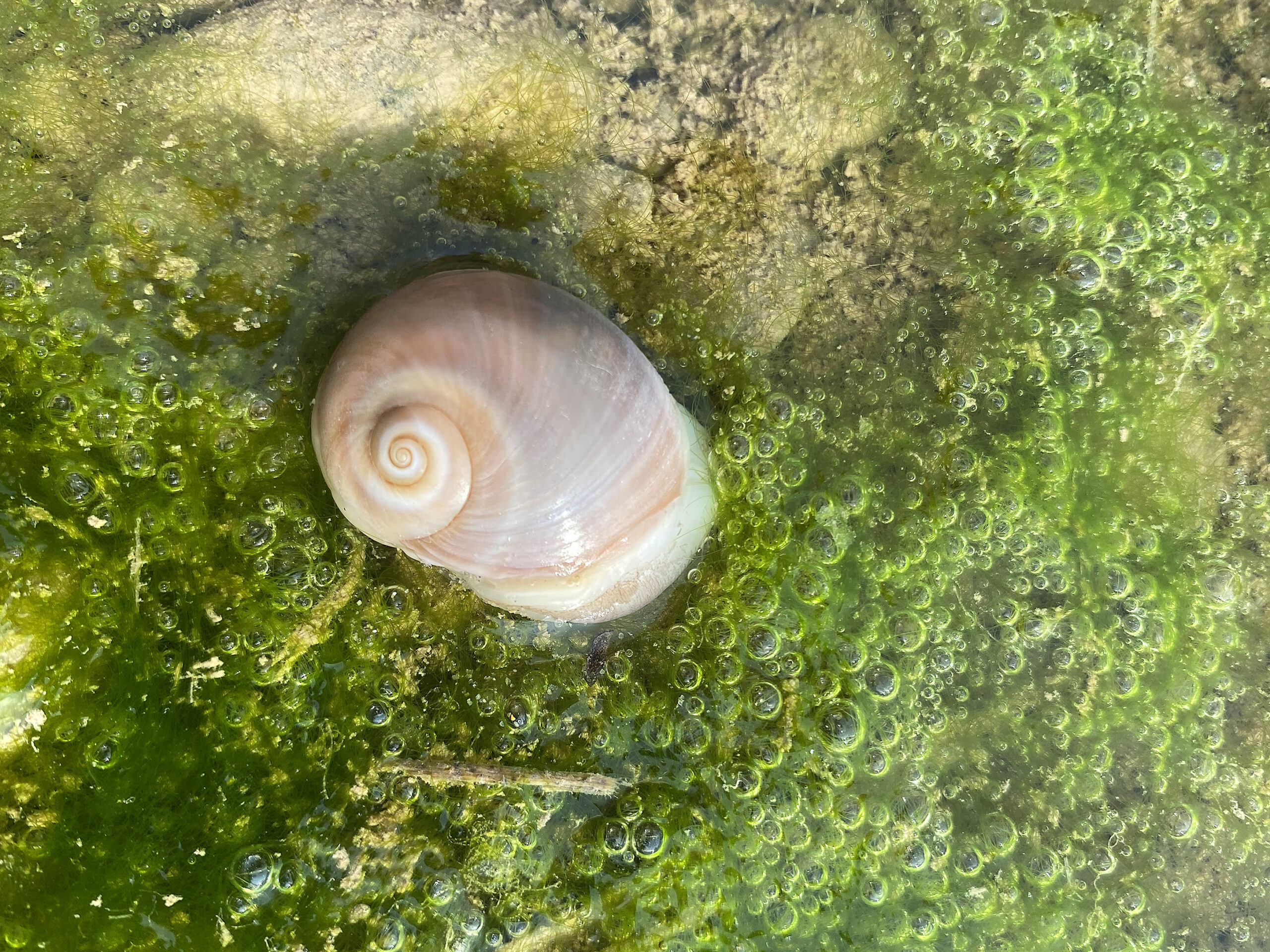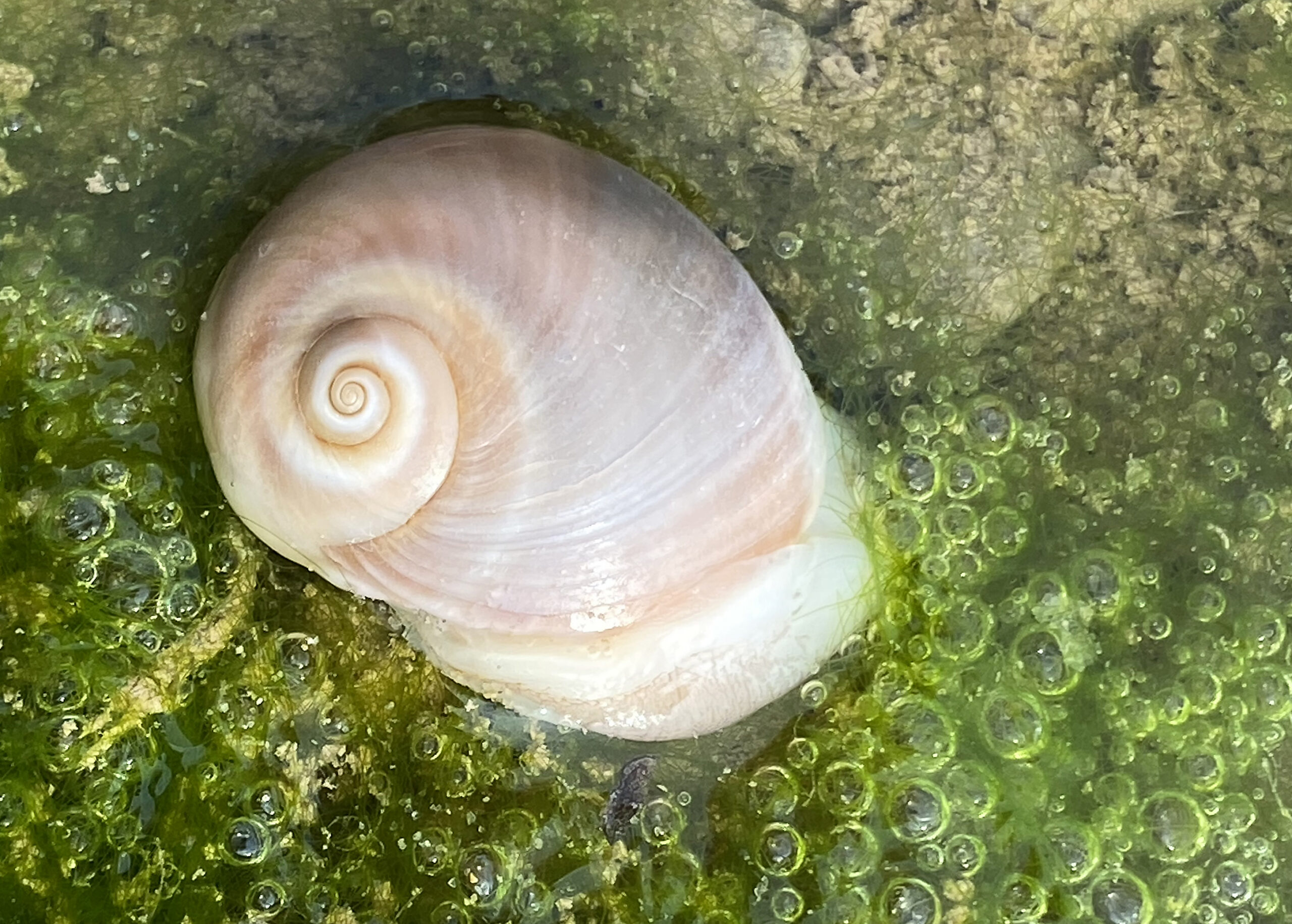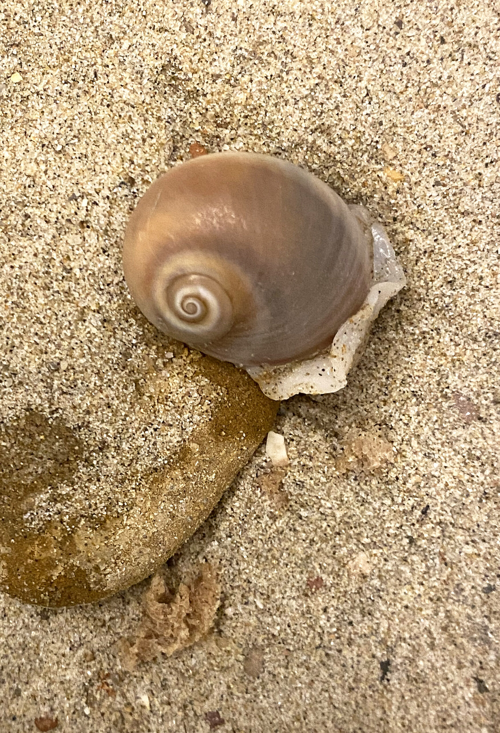 Gastropoda. Caracol marino ojo de tiburón (Neverita josephinia). Paisaje Protegido de la Desembocadura del río Millars, Almazora (Castellón). España.