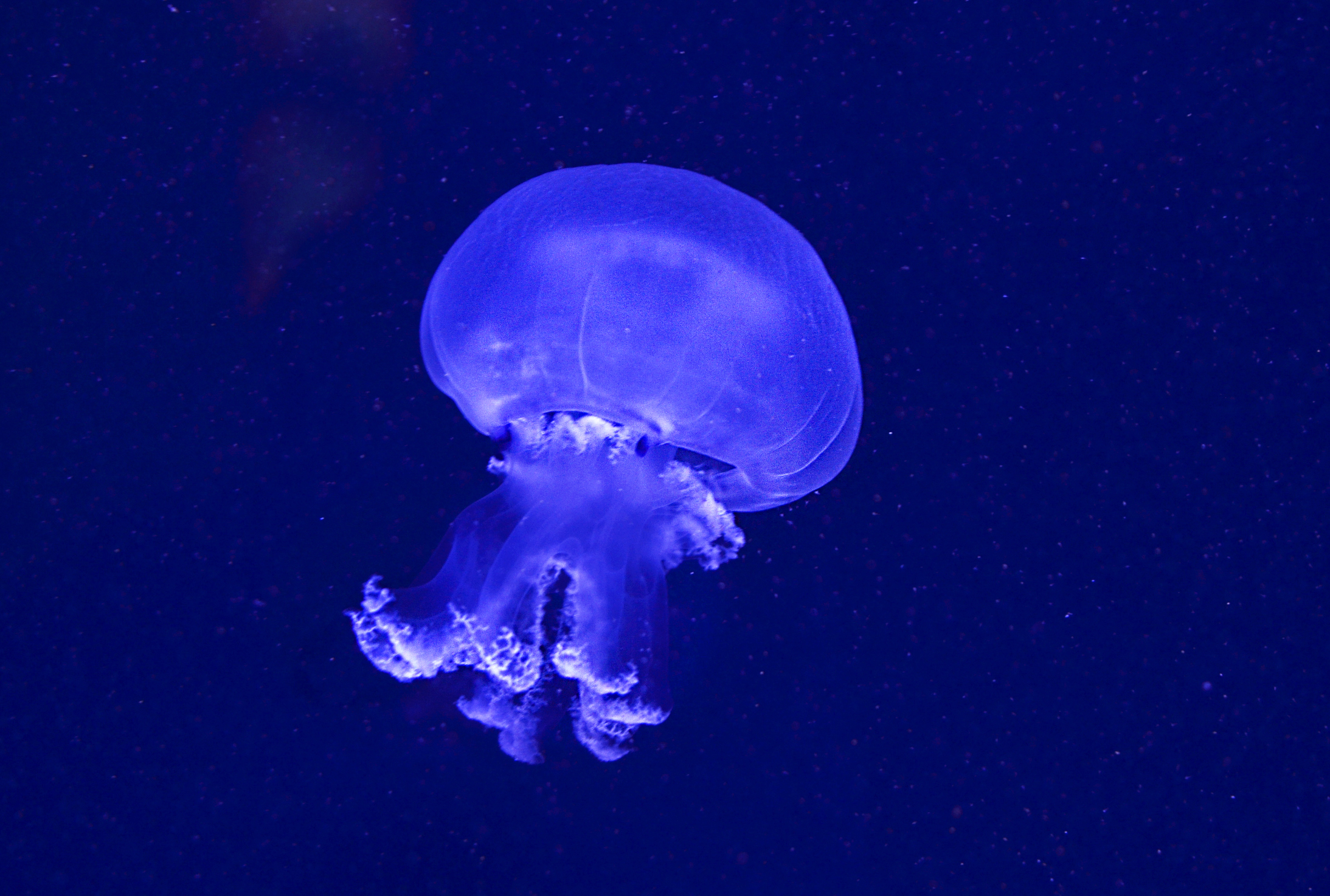 Cnidaria. Medusa azul (Rhizostoma pulmo). Parque Natural de Ses Salines, Espalmador, Cabrera (Islas Baleares). España.
