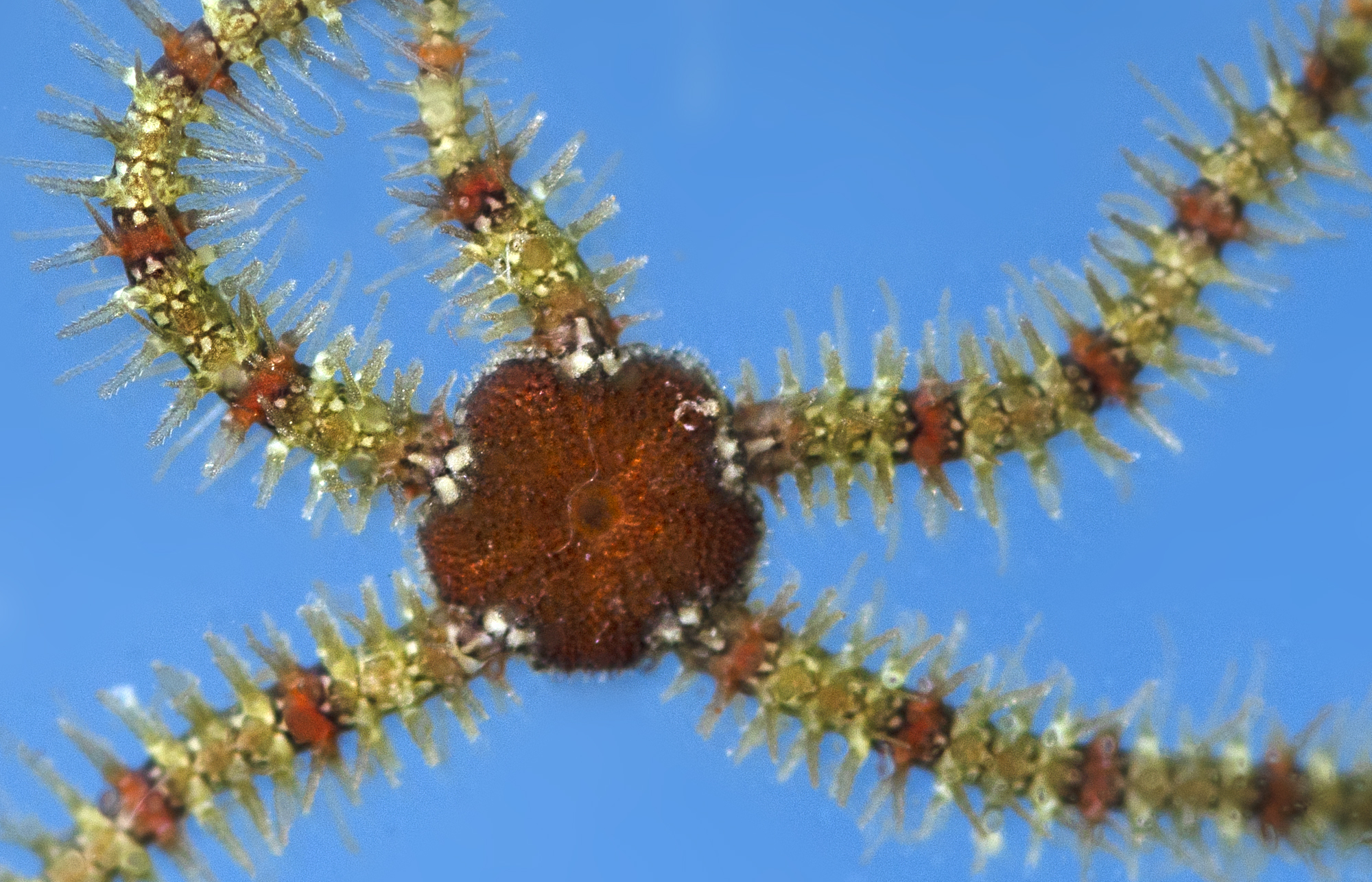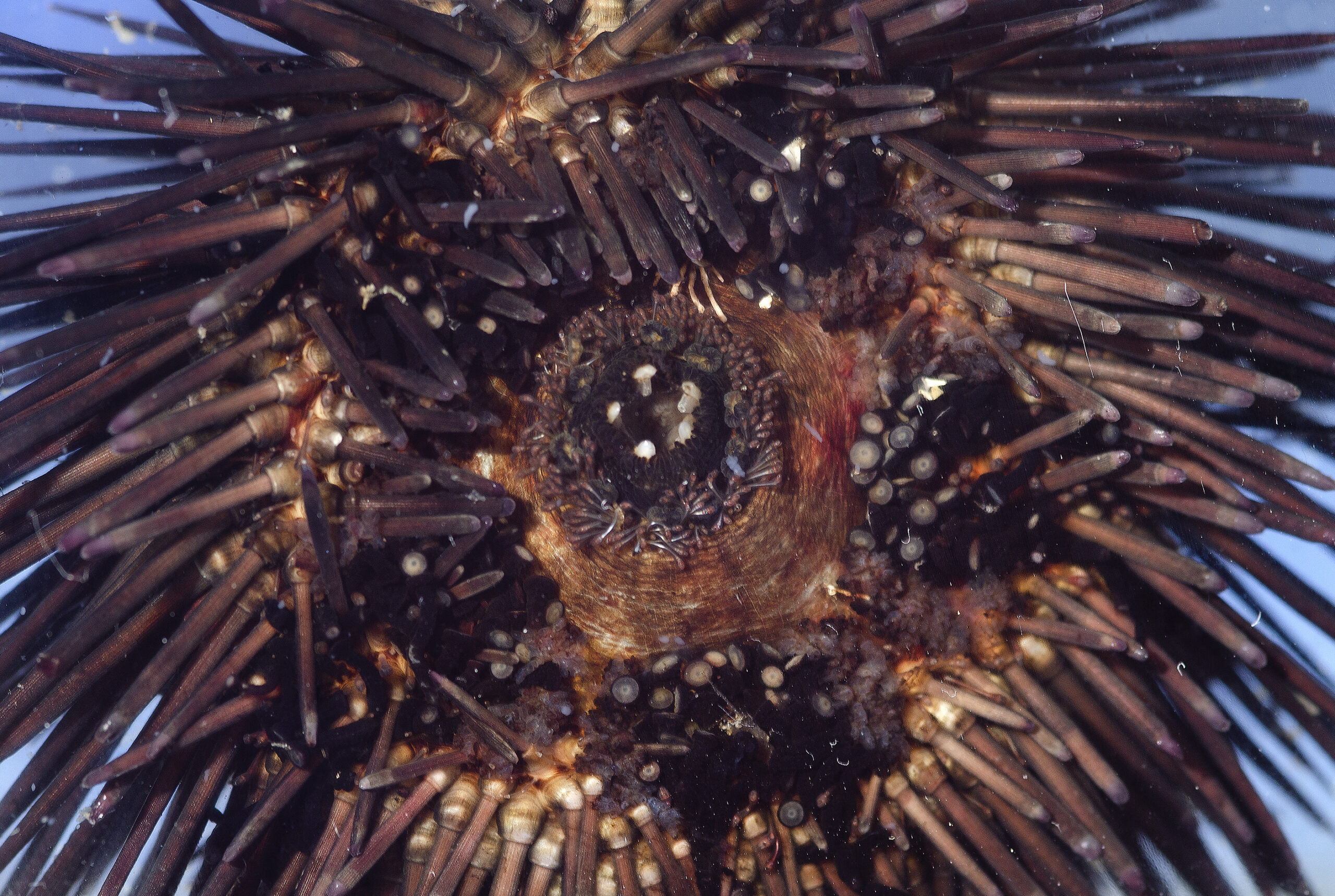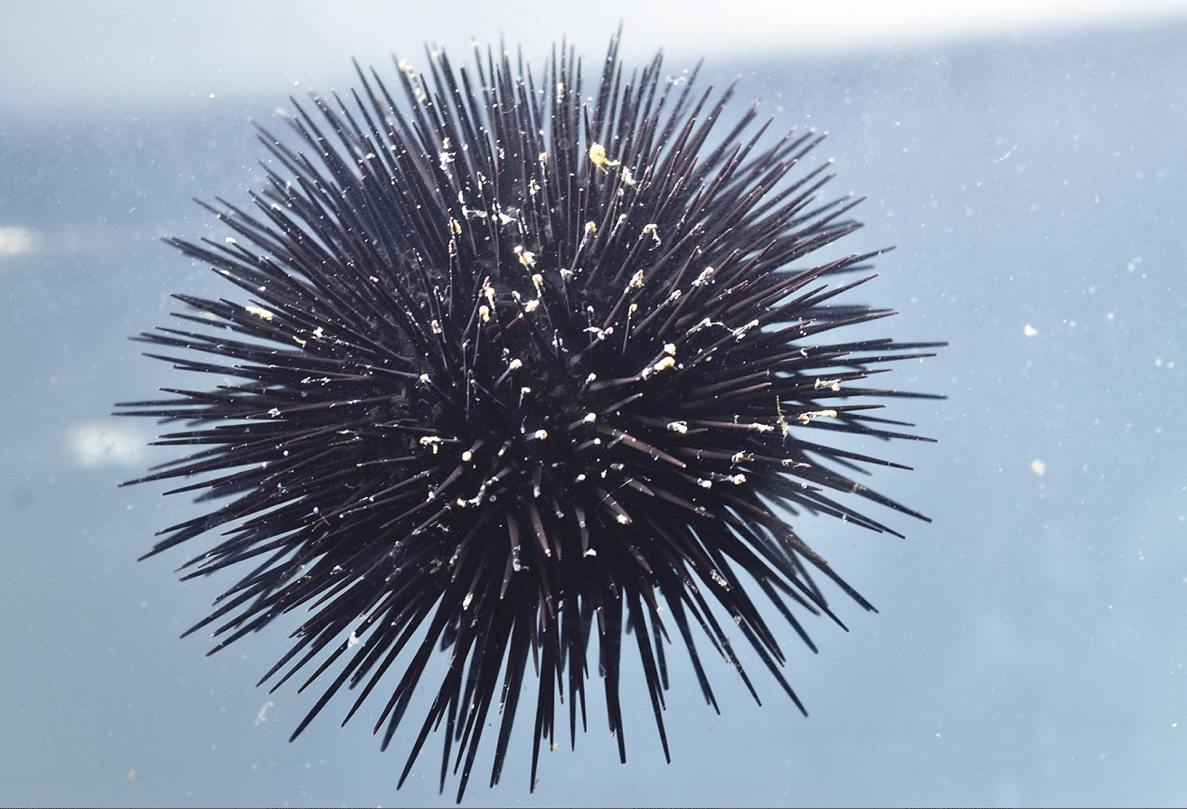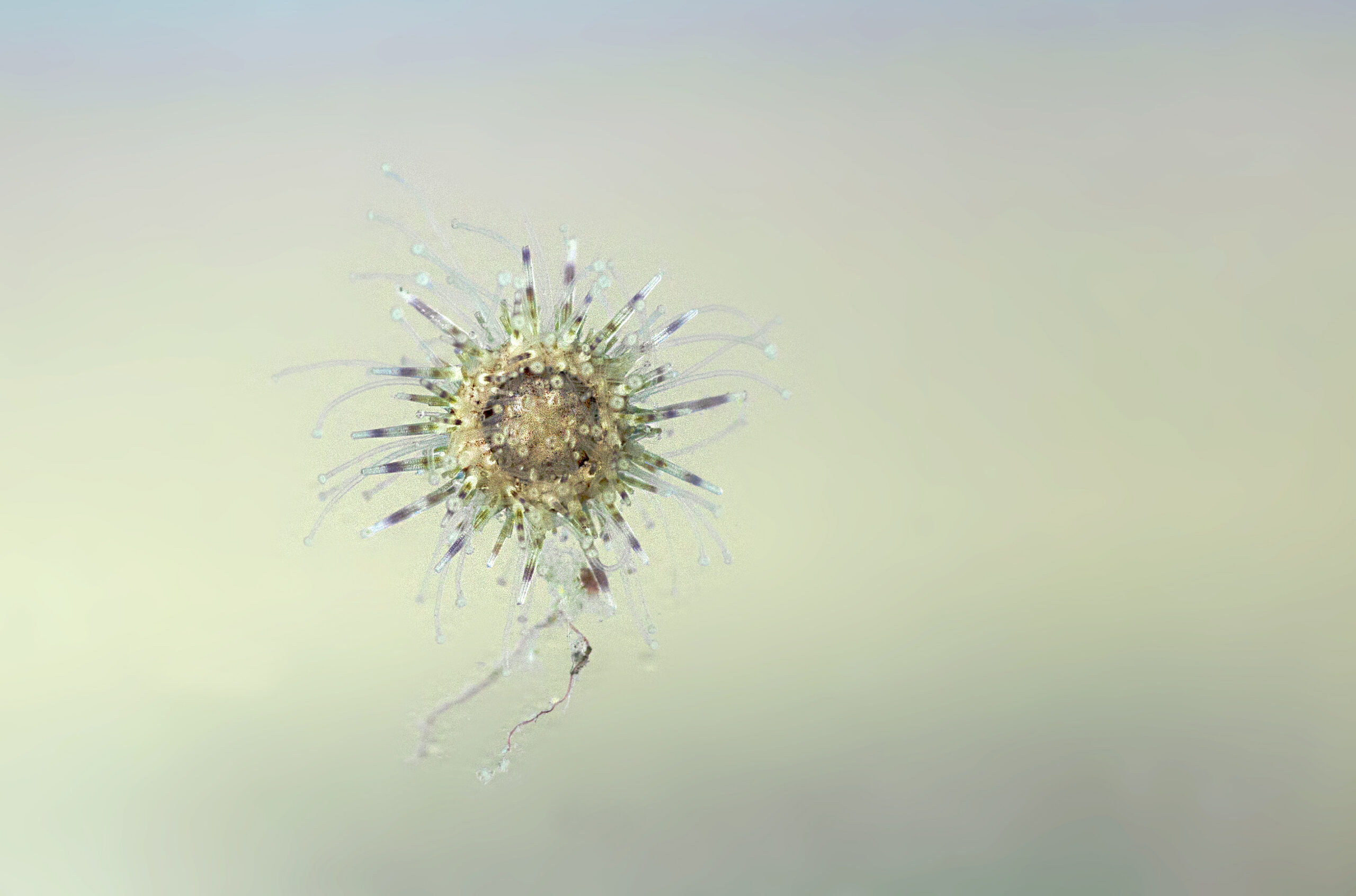 Echinodermata. Erizo marino de roca o castaña de mar (Paracentrotus lividus), larva. Reserva Marina de Cabo Tiñoso, Mazarrón (Murcia). España.