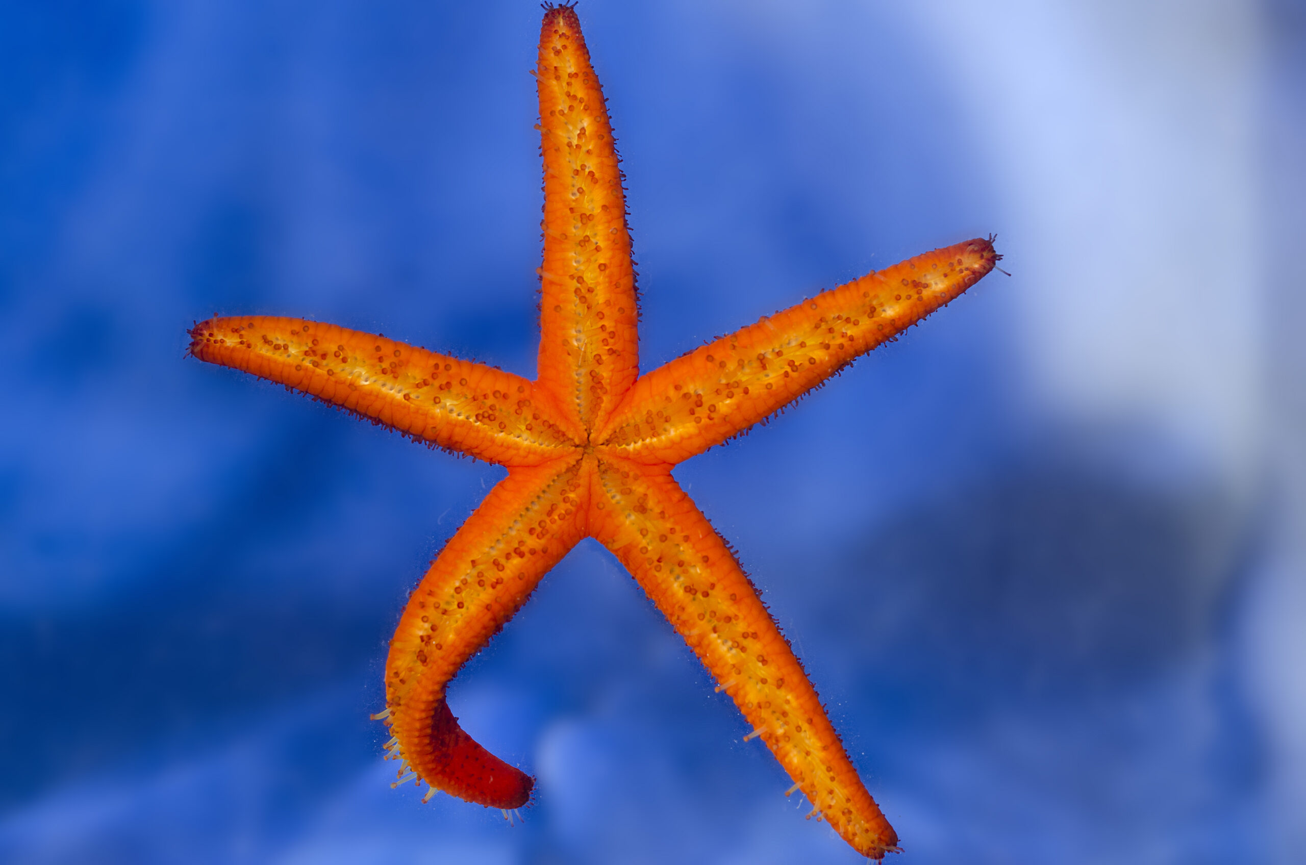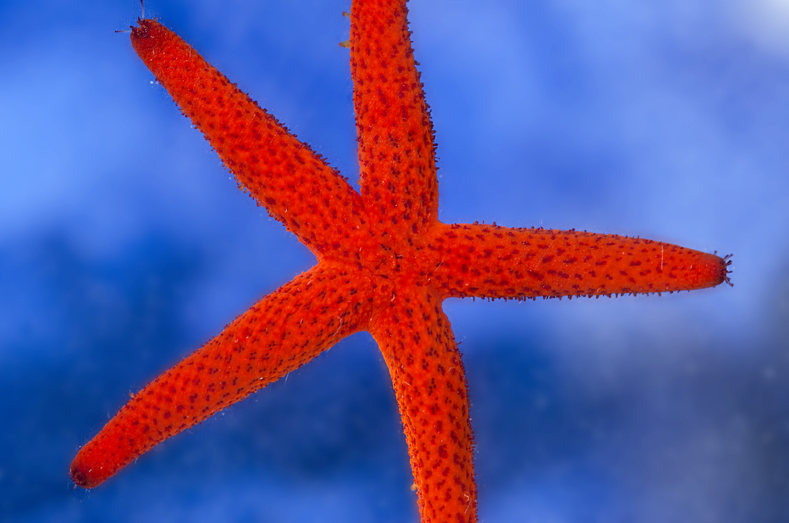 Echinodermata. Estrella de mar roja (Echinaster sepositus). Parque regional de Cabo Cope, Águilas (Murcia). España.