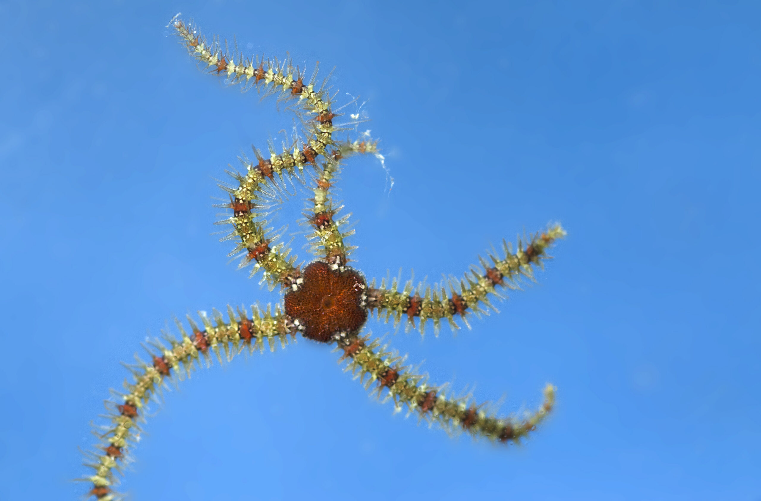 Echinodermata. Ofiura de espinas finas (Ophiothrix fragilis). Parque regional de Cabo Cope, Águilas (Murcia). España.