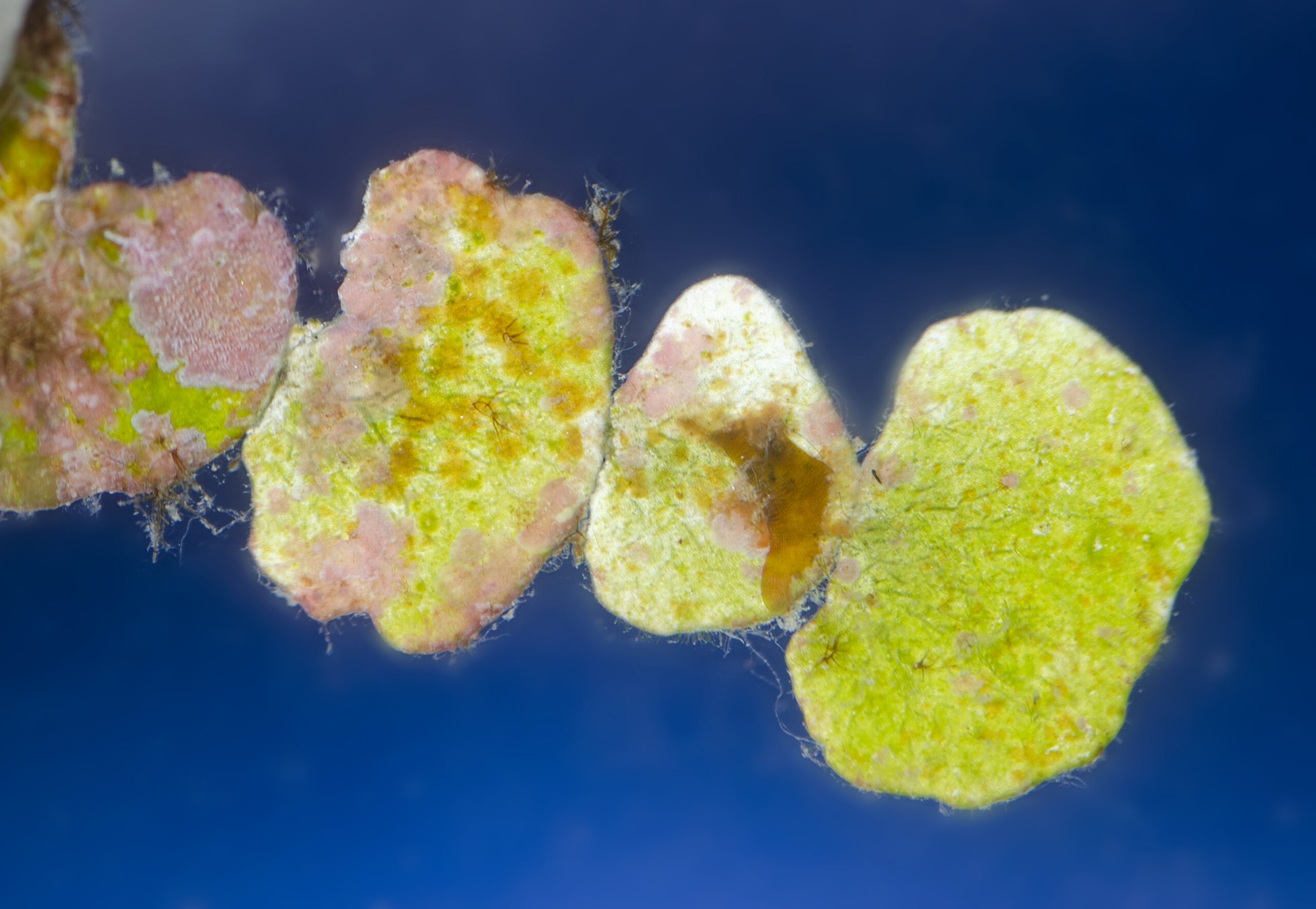 Chromista. Alga verde calcárea del Mediterráneo (Halimeda tuna). Parque regional de Cabo Cope, Águilas (Murcia). España.