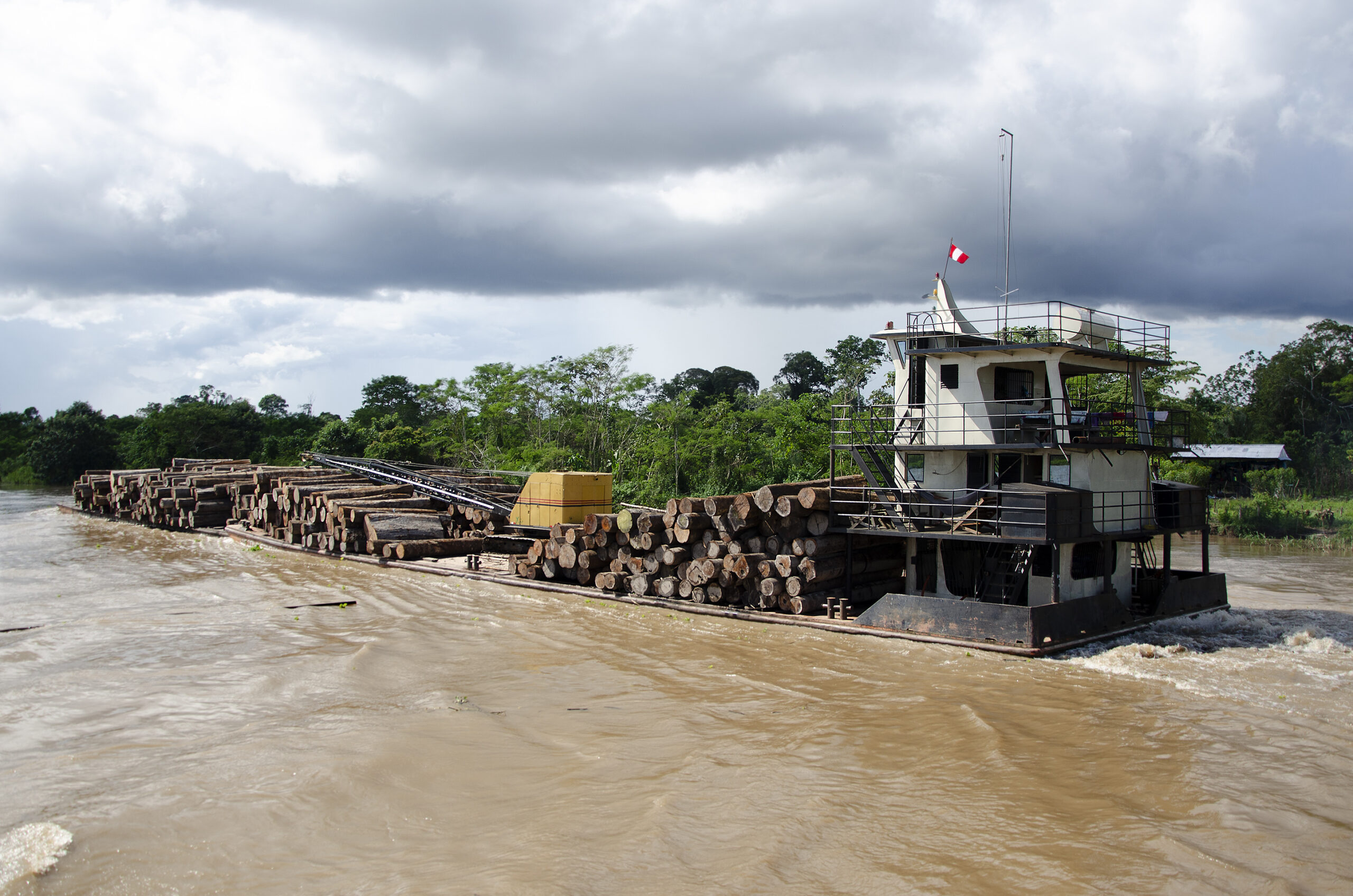 Perú. Sociedad y humanidades. Amazonia peruana. Loreto. Transporte de troncos de la selva hacia Iquitos.