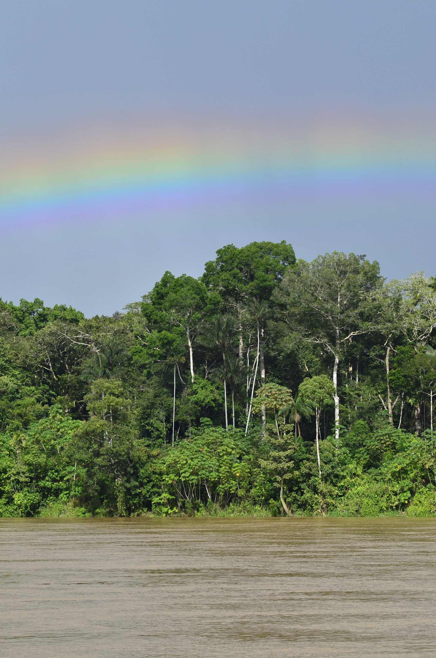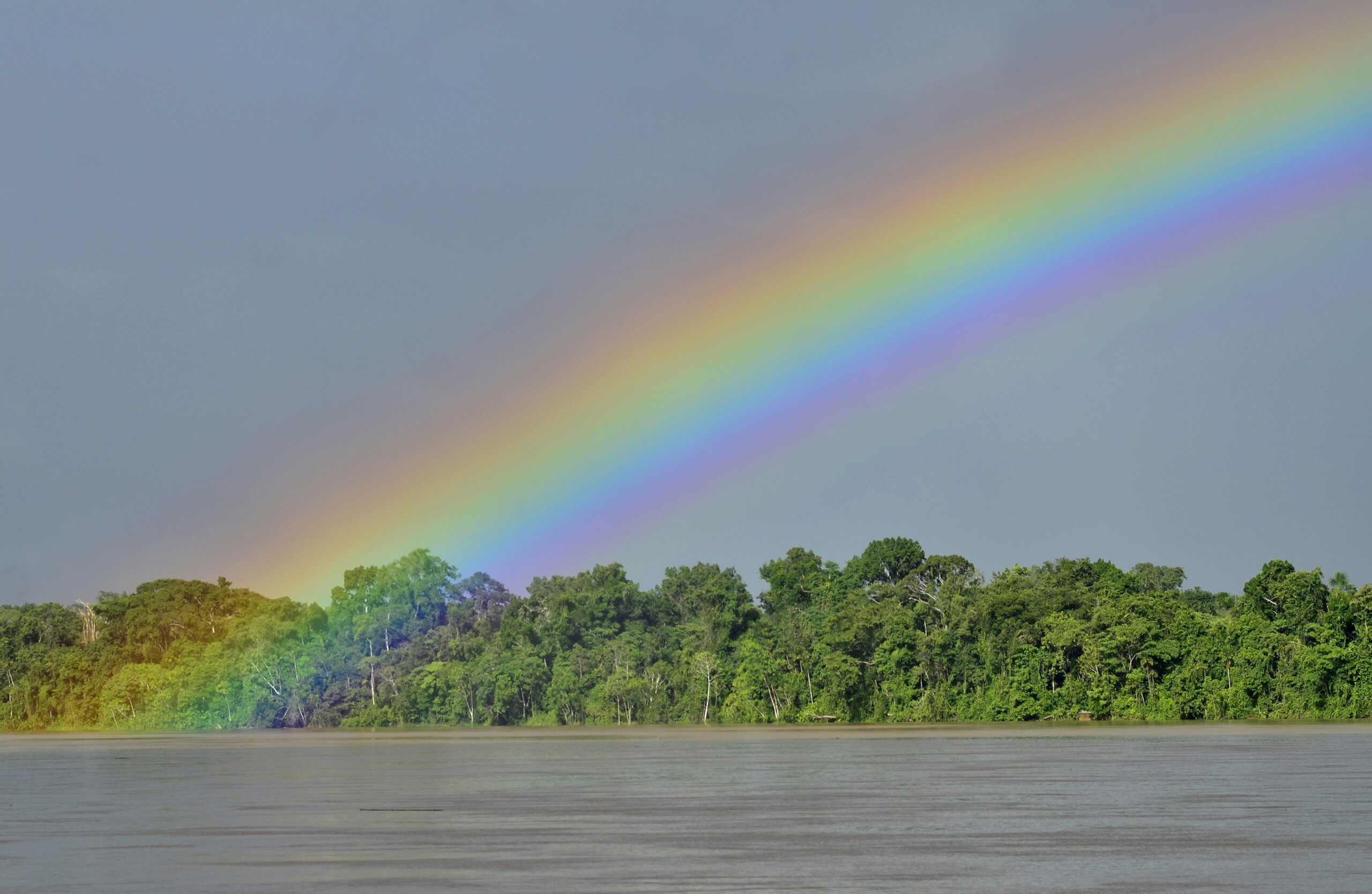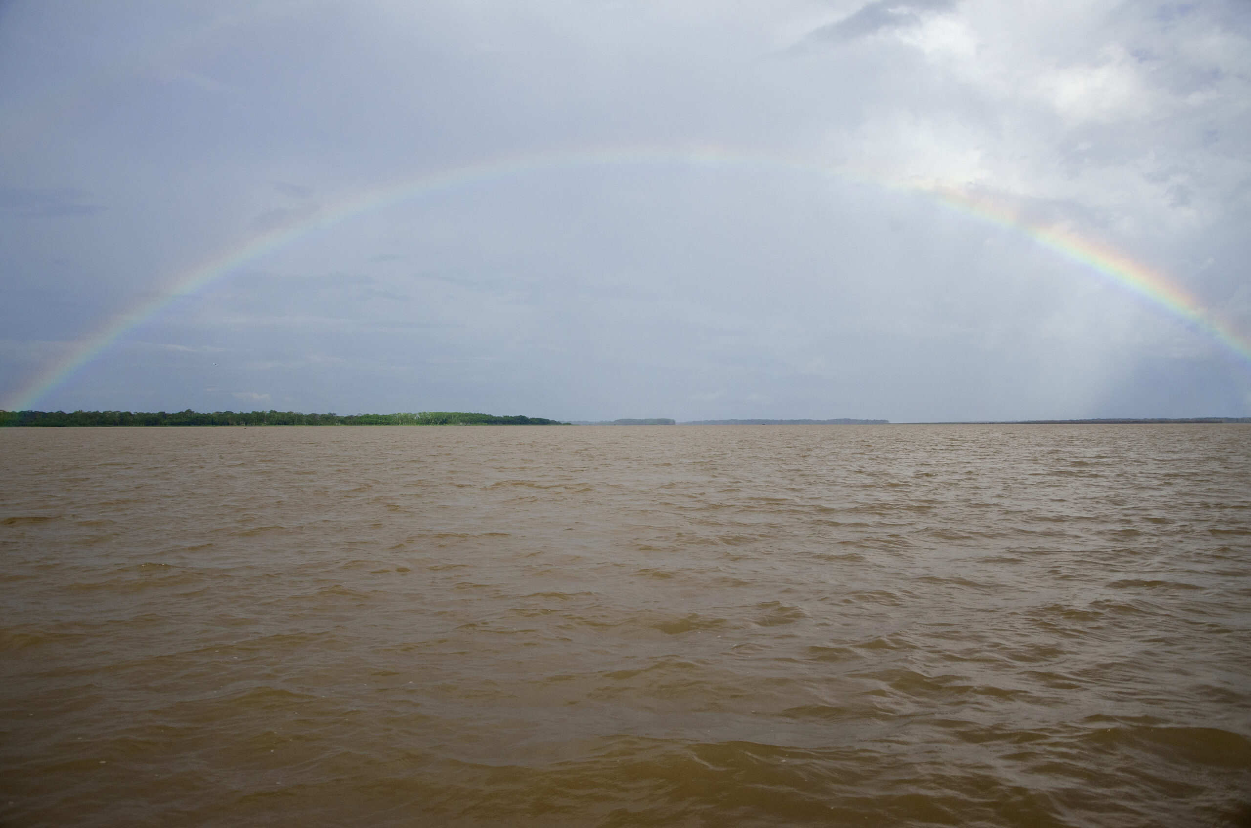 Perú. Paisaje y rutas. Amazonia peruana. Loreto. Río Amazonas, tormenta y arco iris.