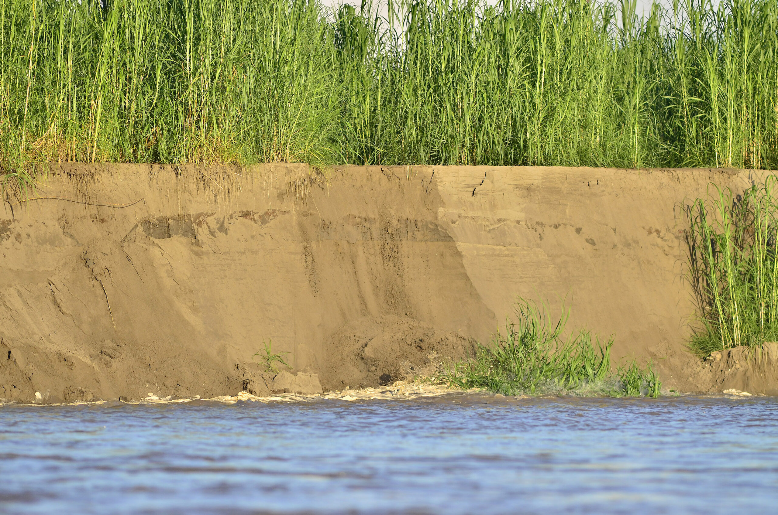Perú. Paisaje y rutas. Amazonia peruana, Loreto. Río Putumayo. Erosión en la orilla.