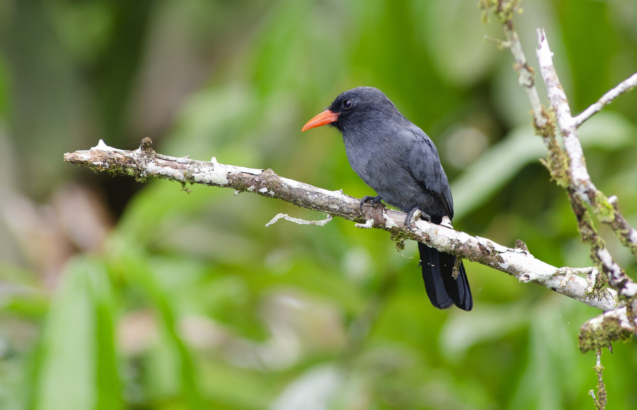 Perú. Aves. Monja de frente negra (Monasa nigrifrons). Amazonia peruana, Loreto. Río Amazonas.