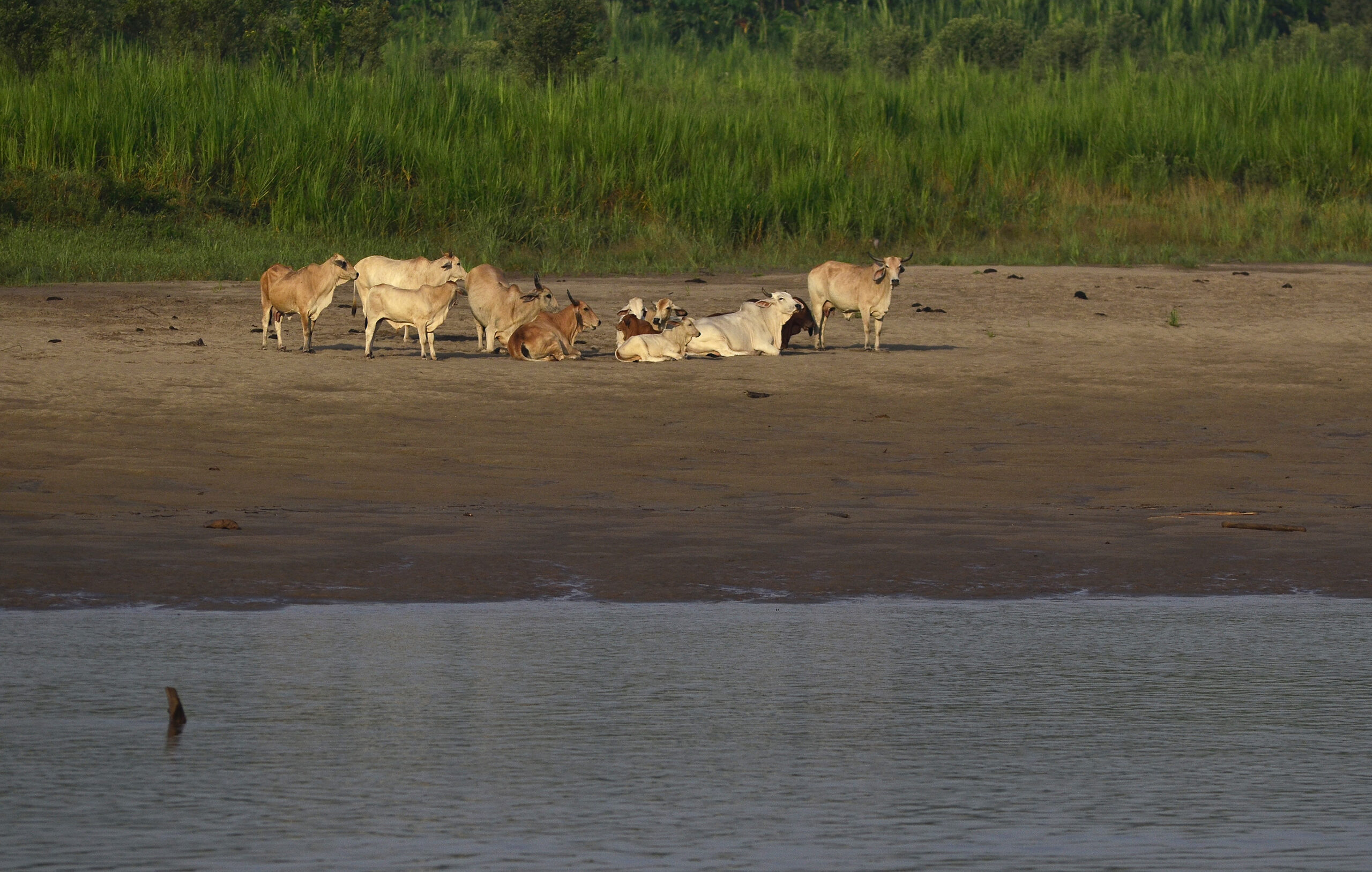 Perú. Sociedad y humanidades. Amazonia peruana, Loreto. Río Putumayo. Ganado bovino.