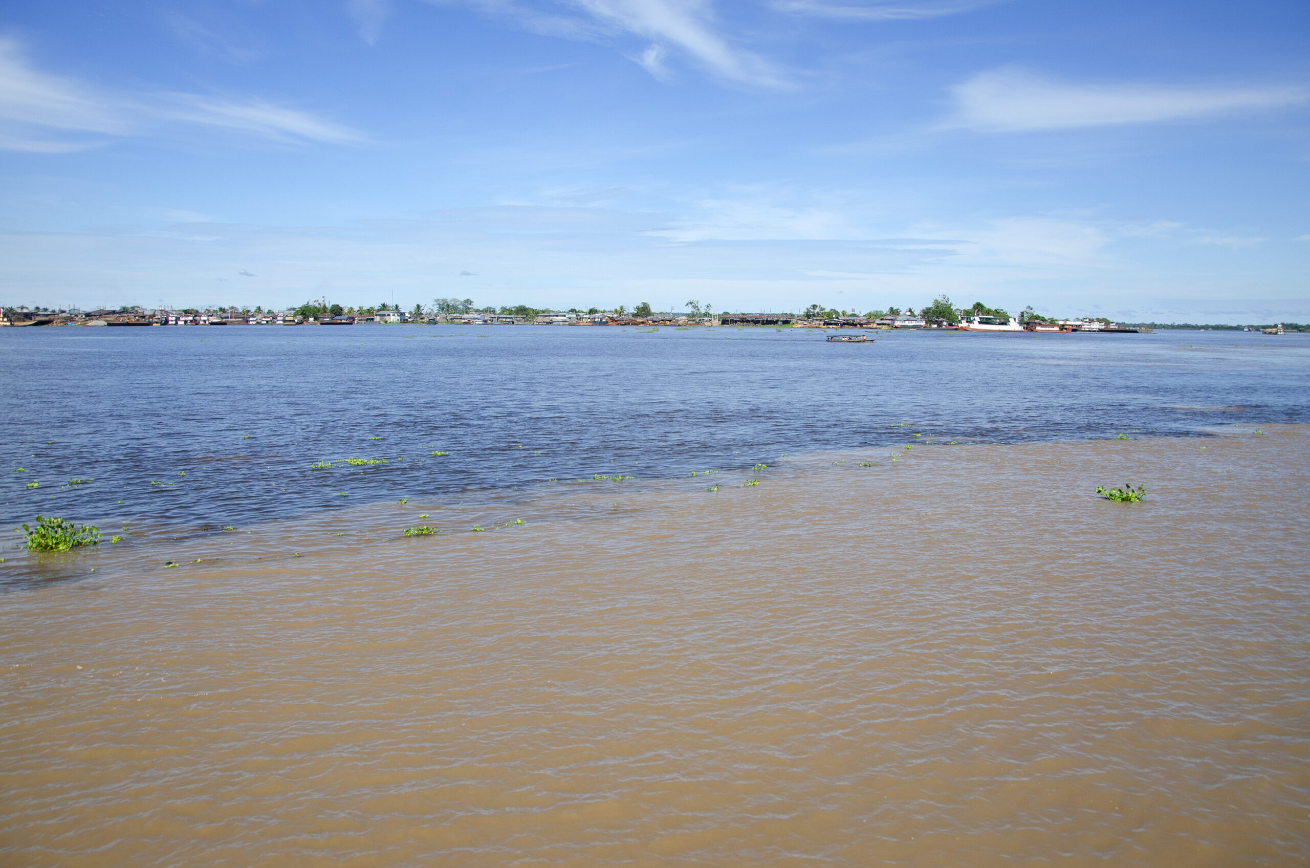 Perú. Paisaje y rutas. Amazonia peruana. Loreto. Desembocadura del río Napo en el Amazonas, en Francisco de Orellana.