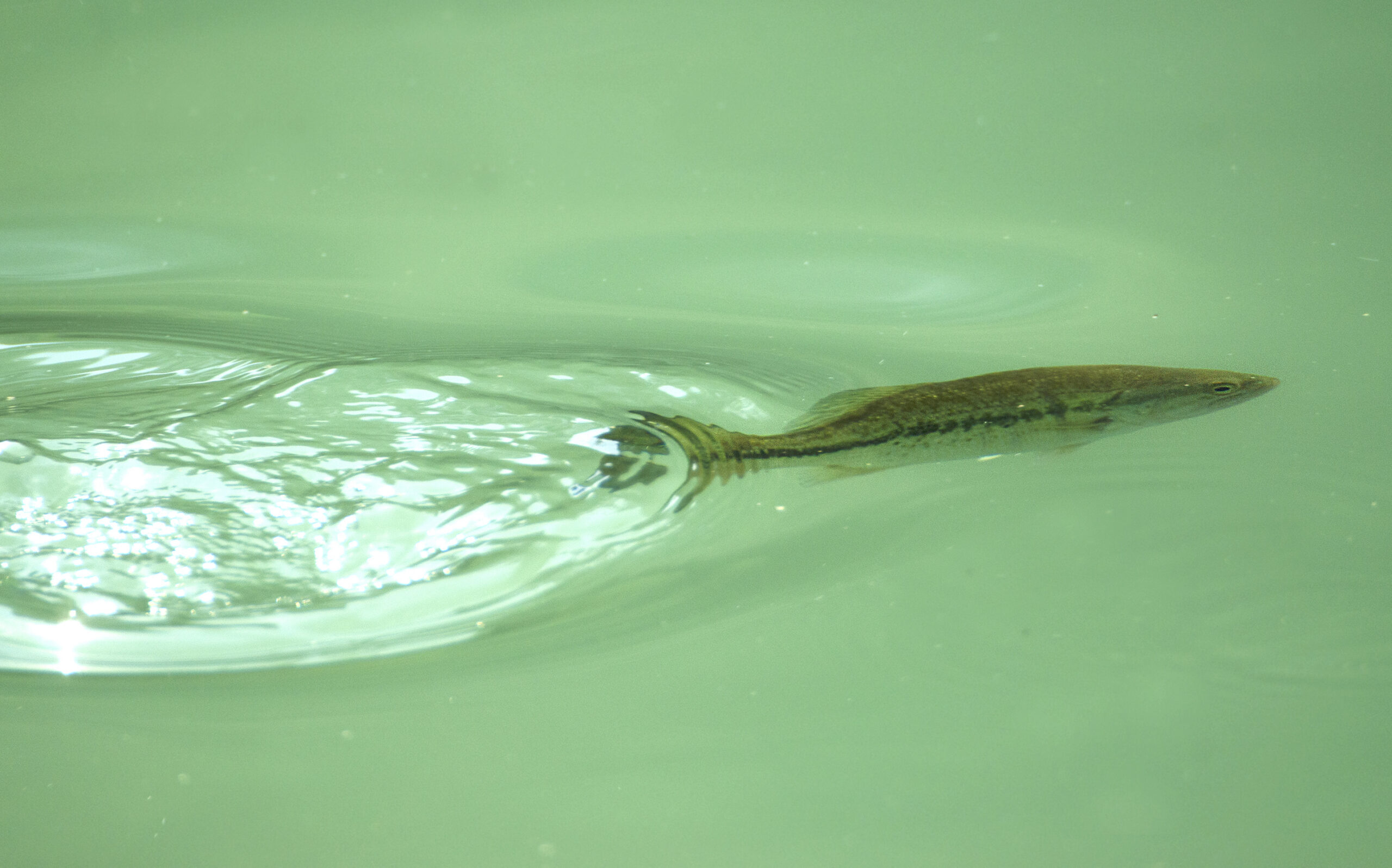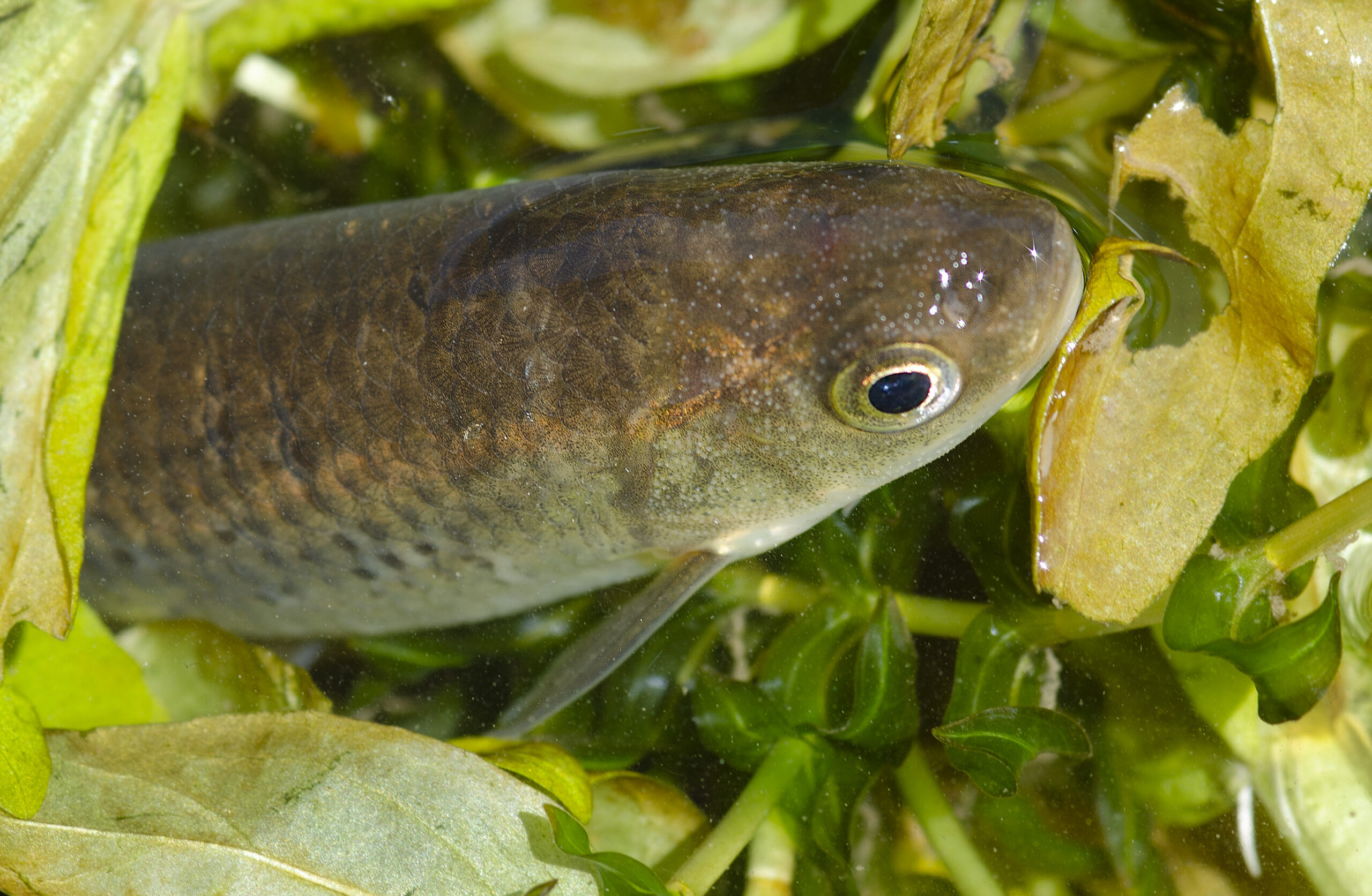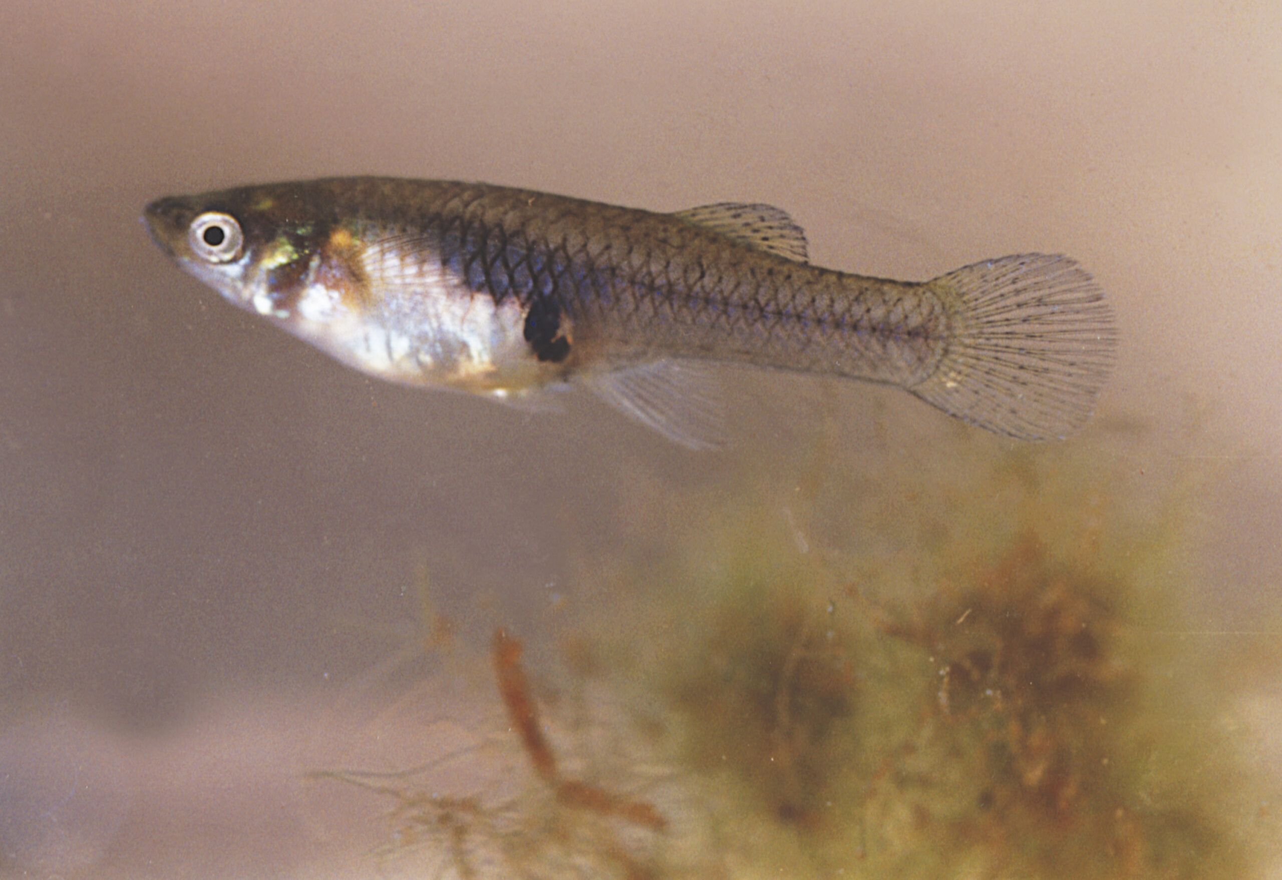 Gambusia (Gambusia affinis). Paisaje Protegido de la Desembocadura del río Millars, Vila-real (Castellón). España.