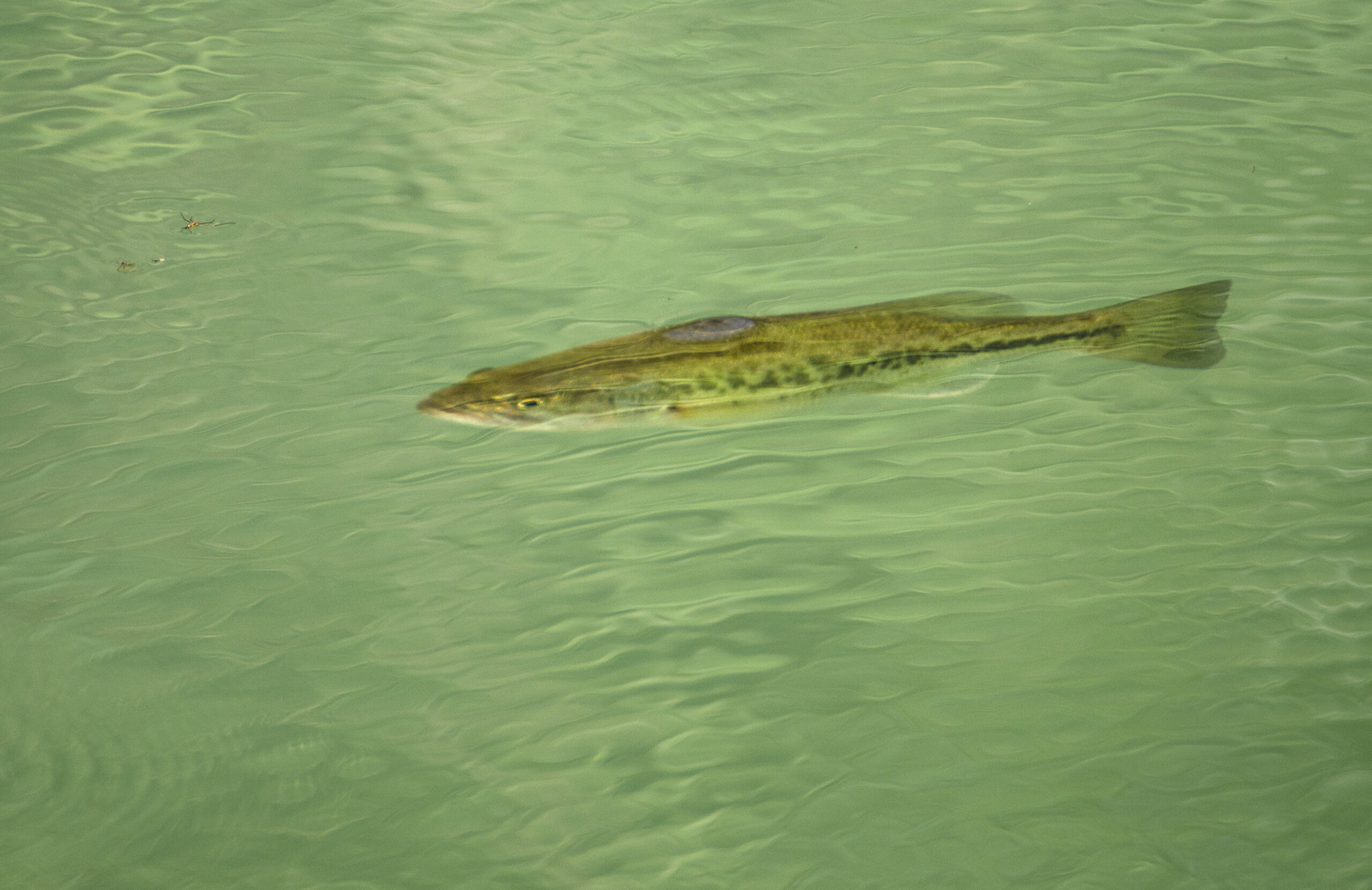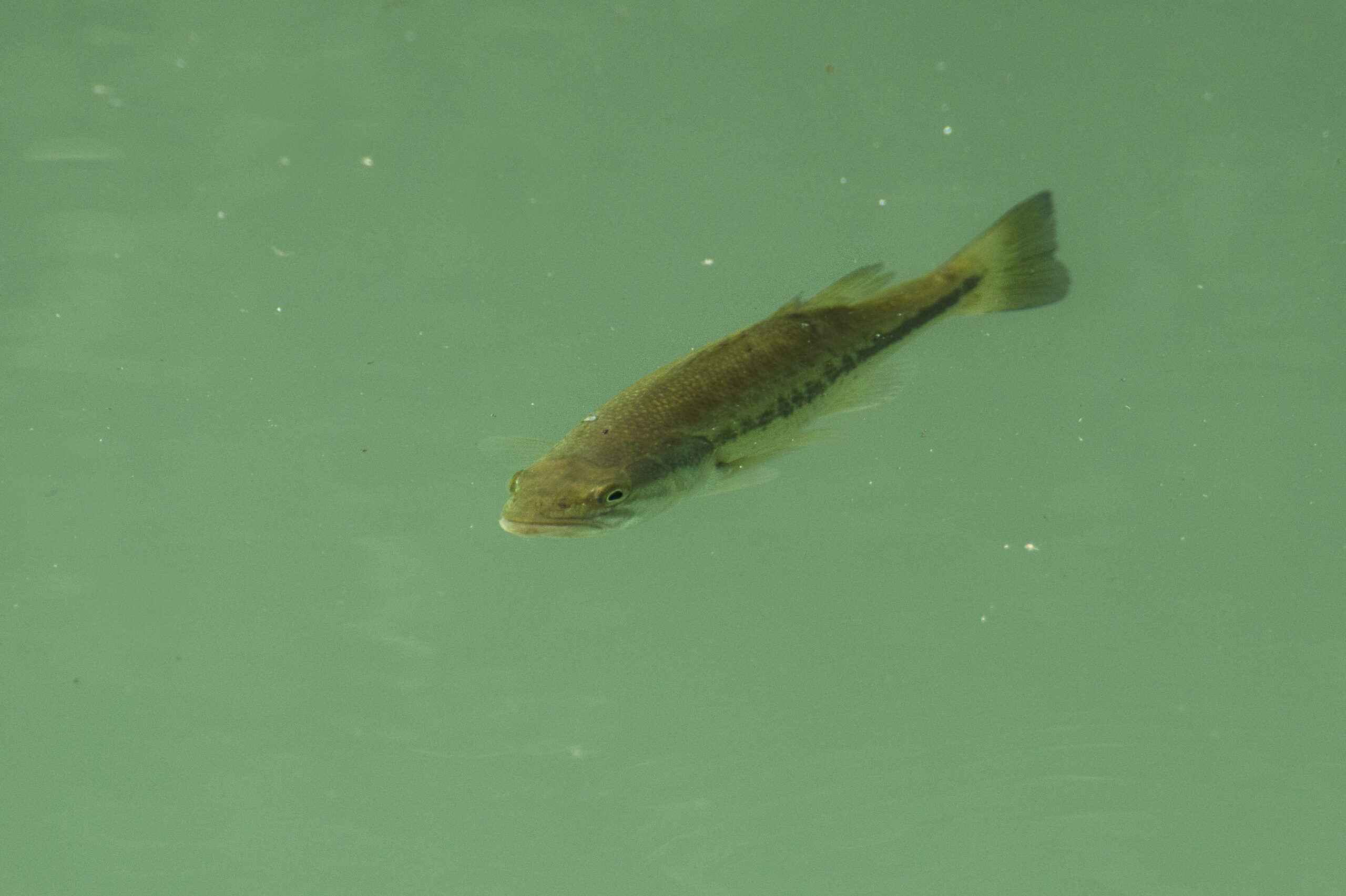 Perca americana (Micropterus nigricans). Paisaje Protegido de la Desembocadura del río Millars, Vila-real (Castellón). España.