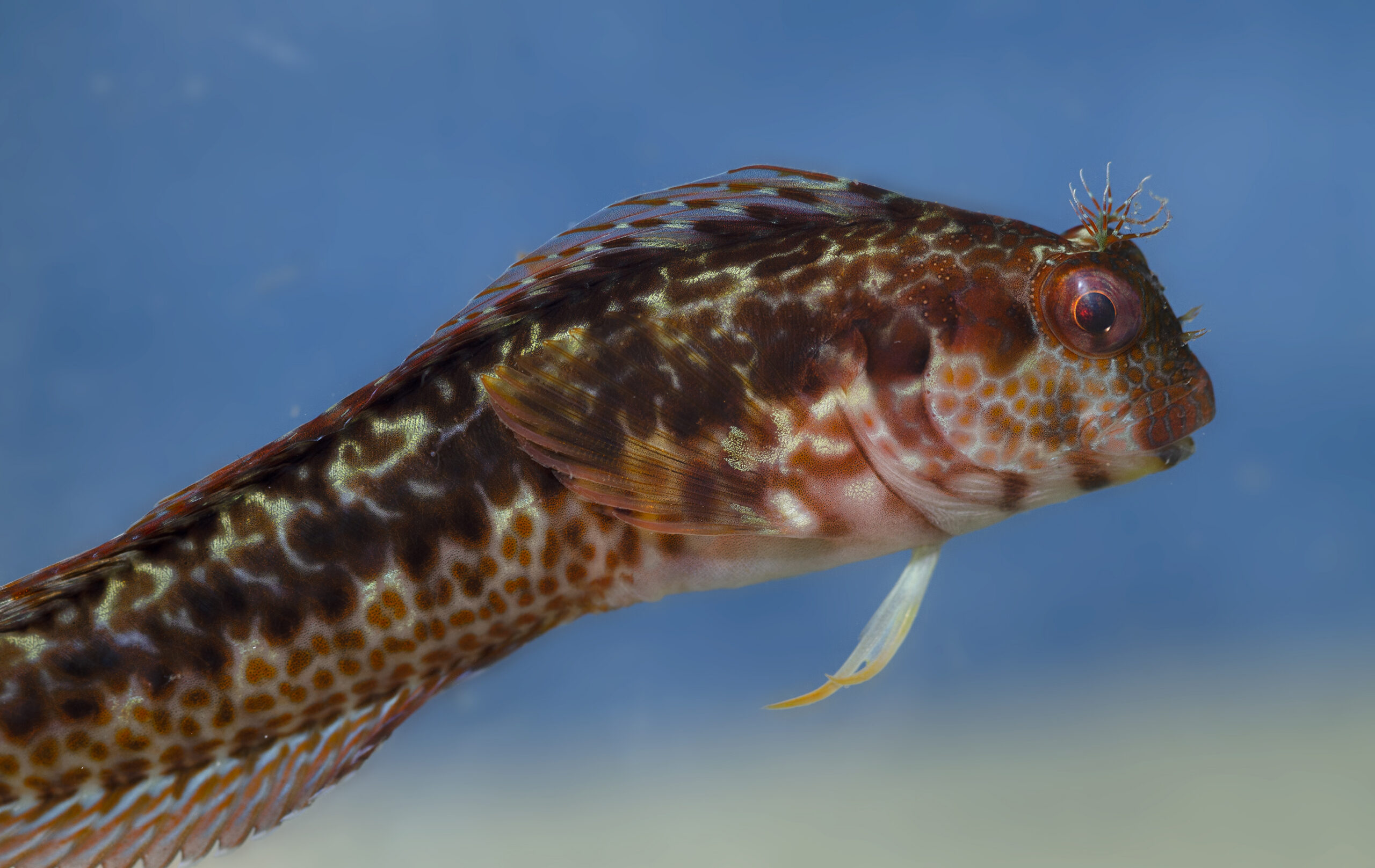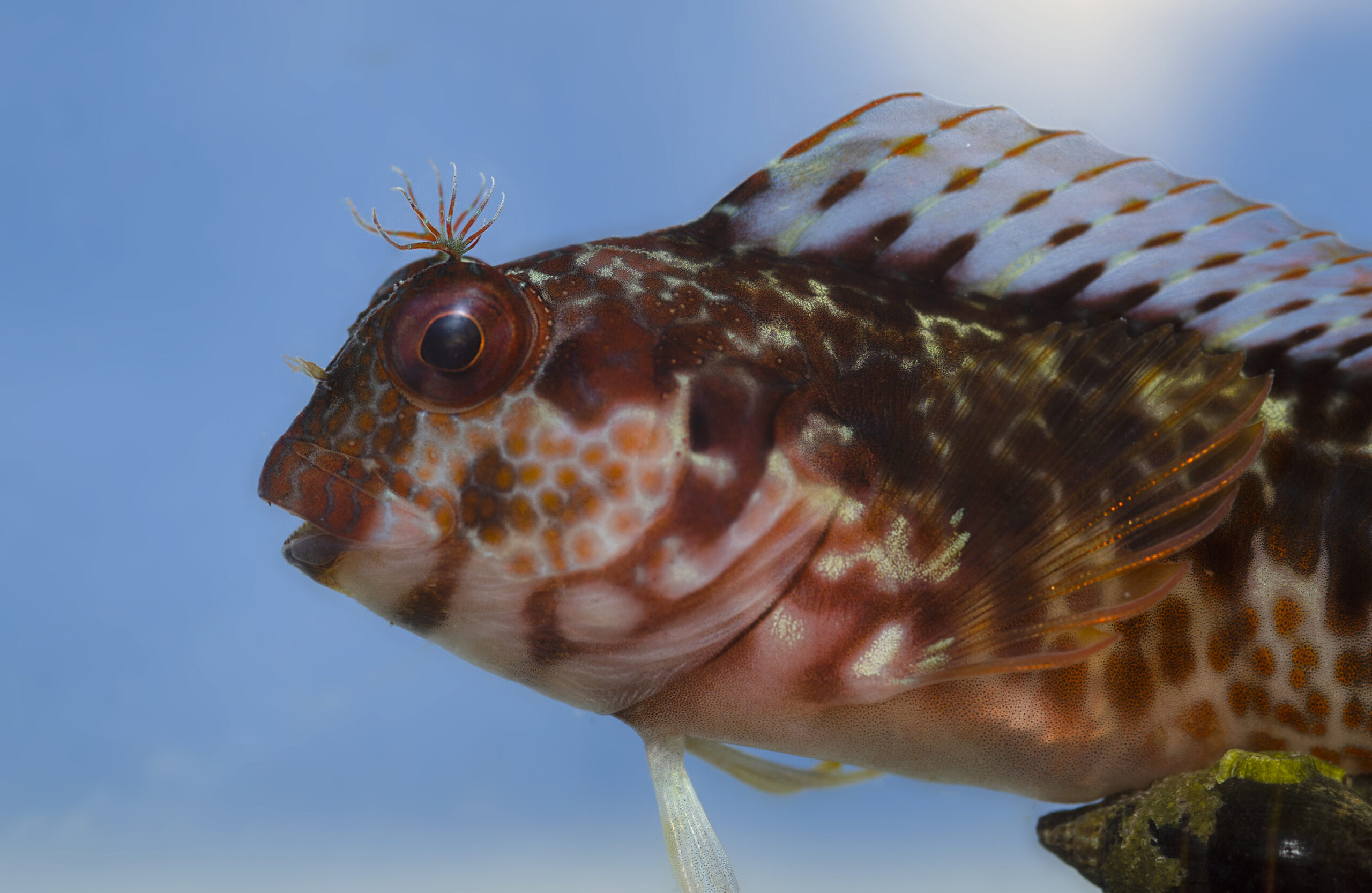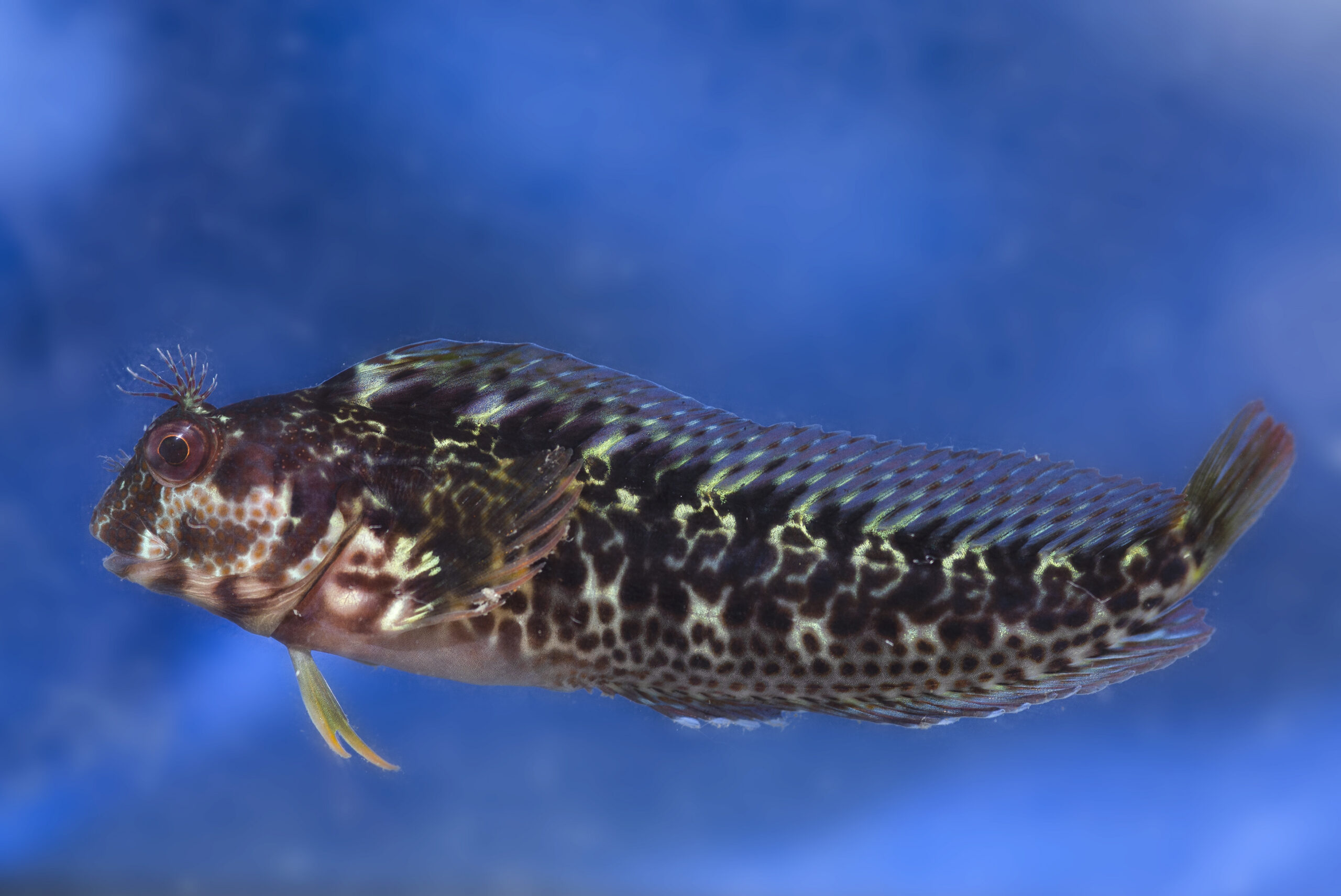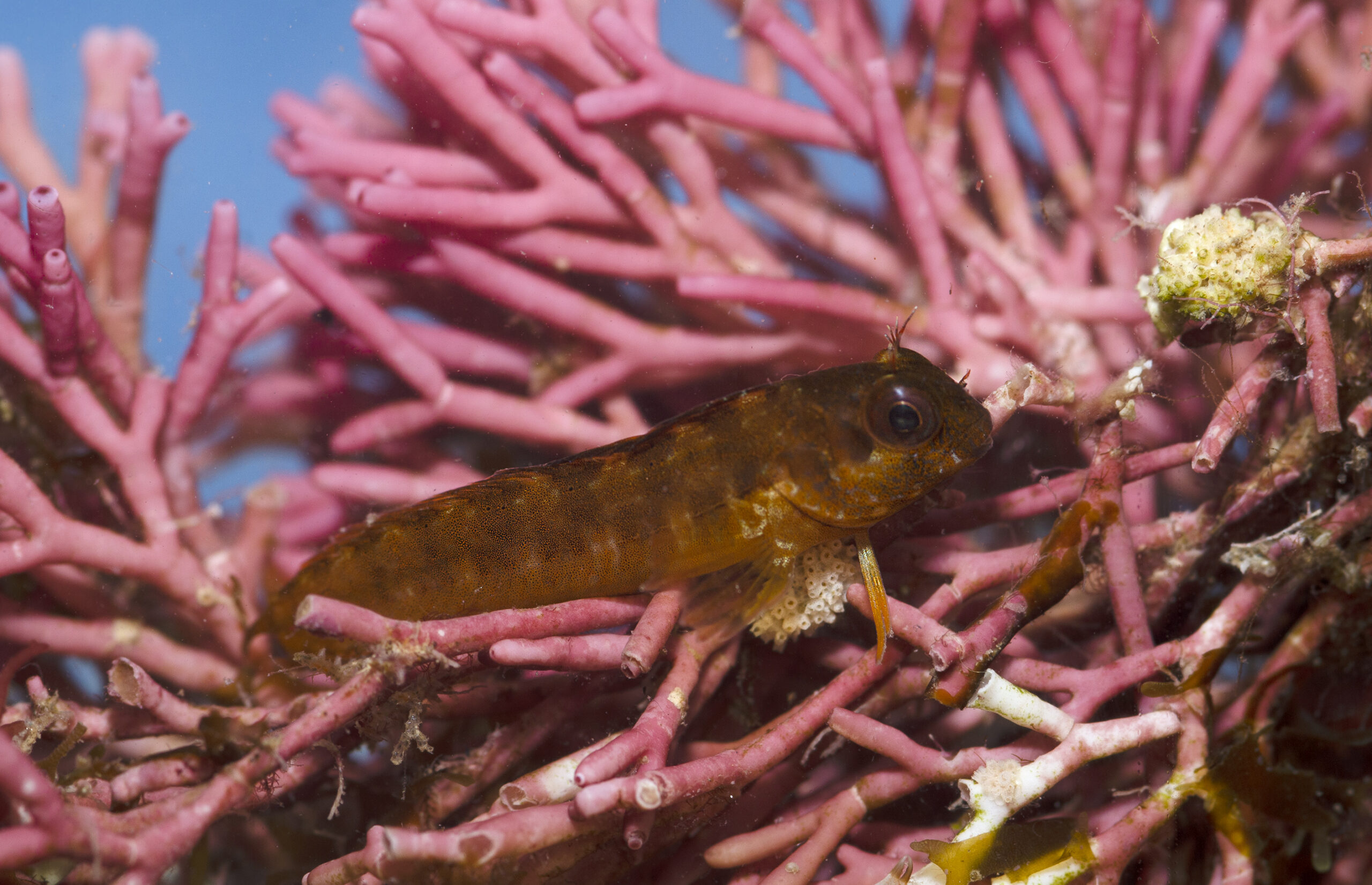 Moma de plumeros (Blennius pilicornis). Parque regional de Cabo Cope, Águilas (Murcia). España.