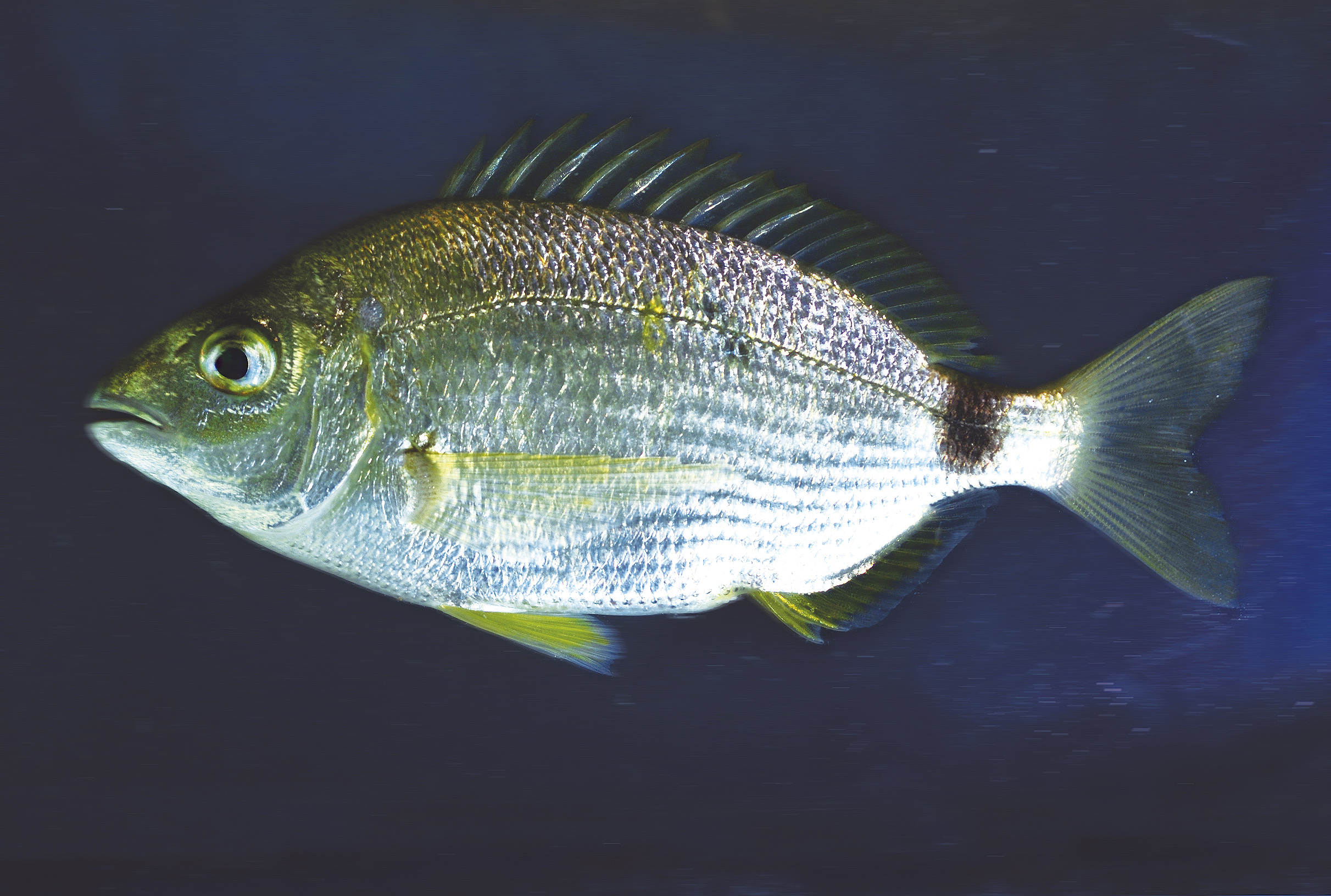 Dorada (Sparus aurata). Paisaje Protegido de la Desembocadura del río Millars, Almazora (Castellón). España.