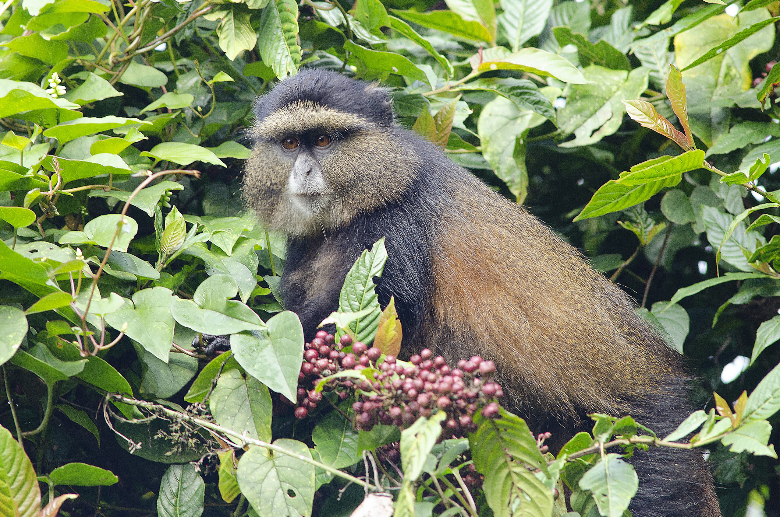Ruanda. Mammalia. Mono o cercopiteco dorado (Cercopithecus kandti). Parque Nacional de los Volcanes de Virunga.