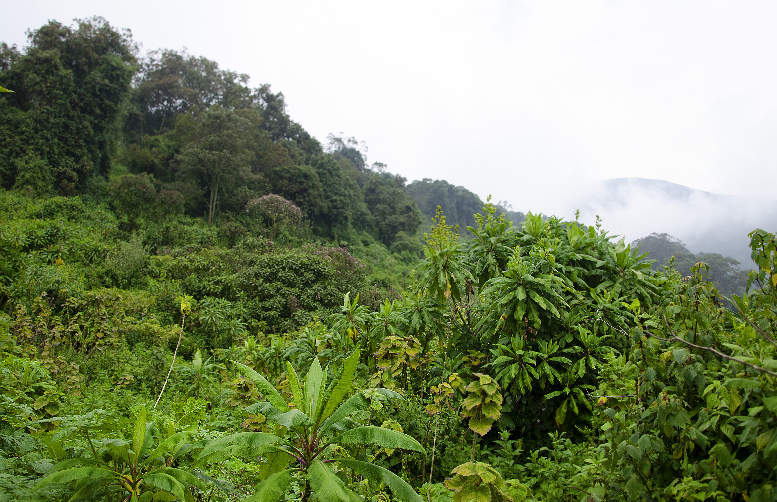 Ruanda. Paisaje y rutas. Musanze. Parque Nacional de los Volcanes Virunga. Monte Bisoke, senda de gorilas.