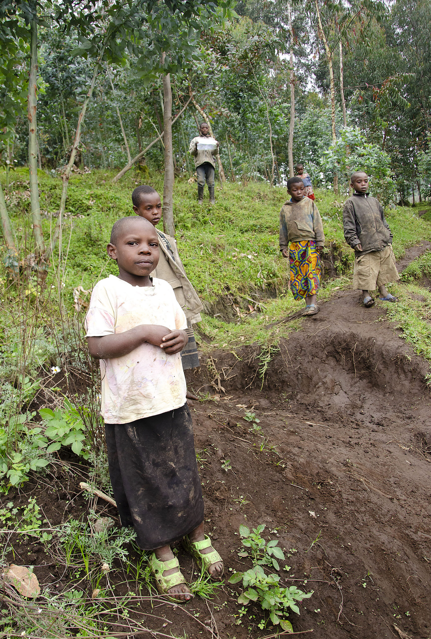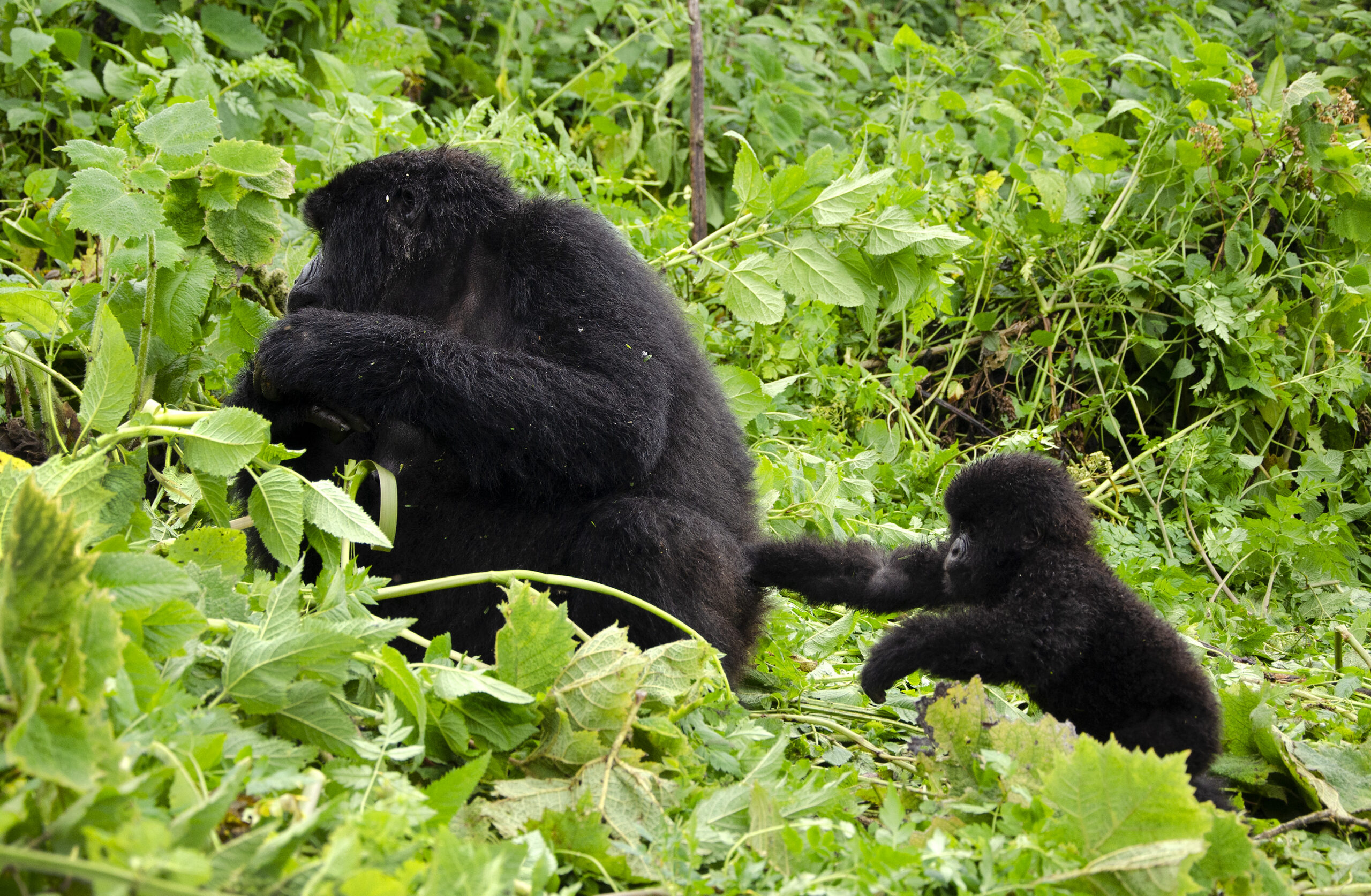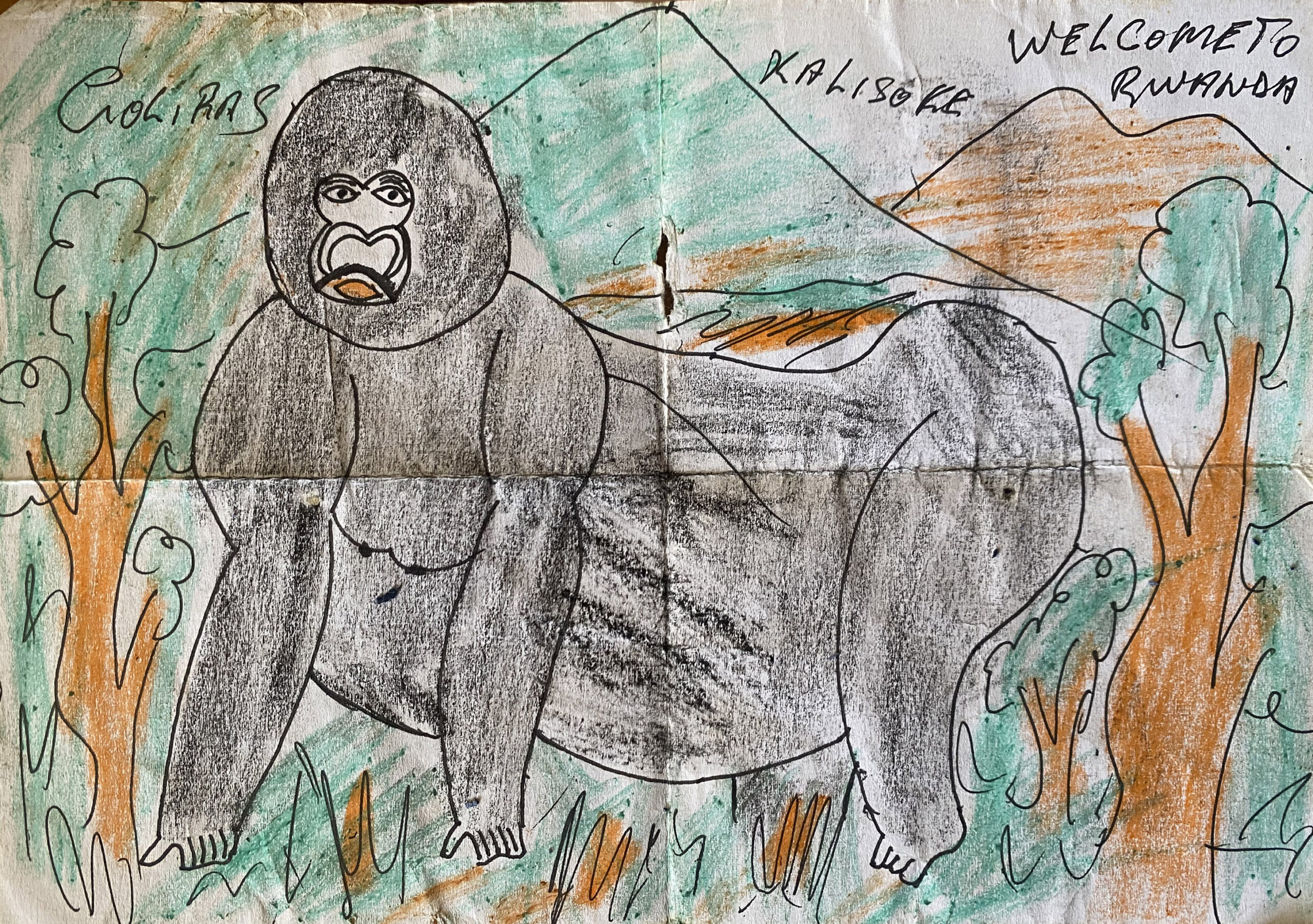 Ruanda. Sociedad y humanidades. Musanze.Parque Nacional de los Volcanes Virunga. Dibujo infantil del espalda plateado.