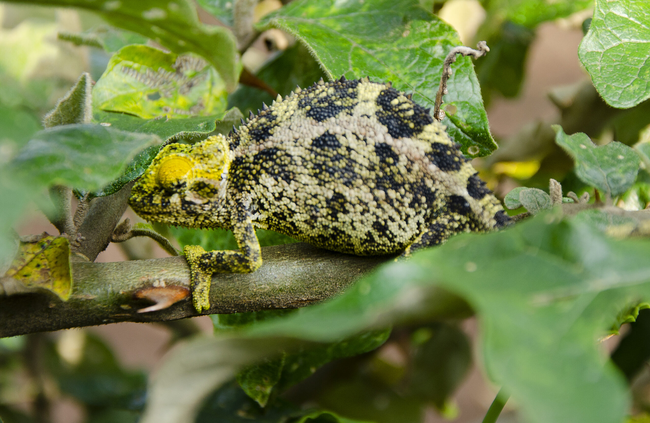 Ruanda. Reptilia. Camaleón rugoso (Trioceros rudis). Parque Nacional de los Volcanes de Virunga. Musanze. Parque Nacional de los Volcanes Virunga.
