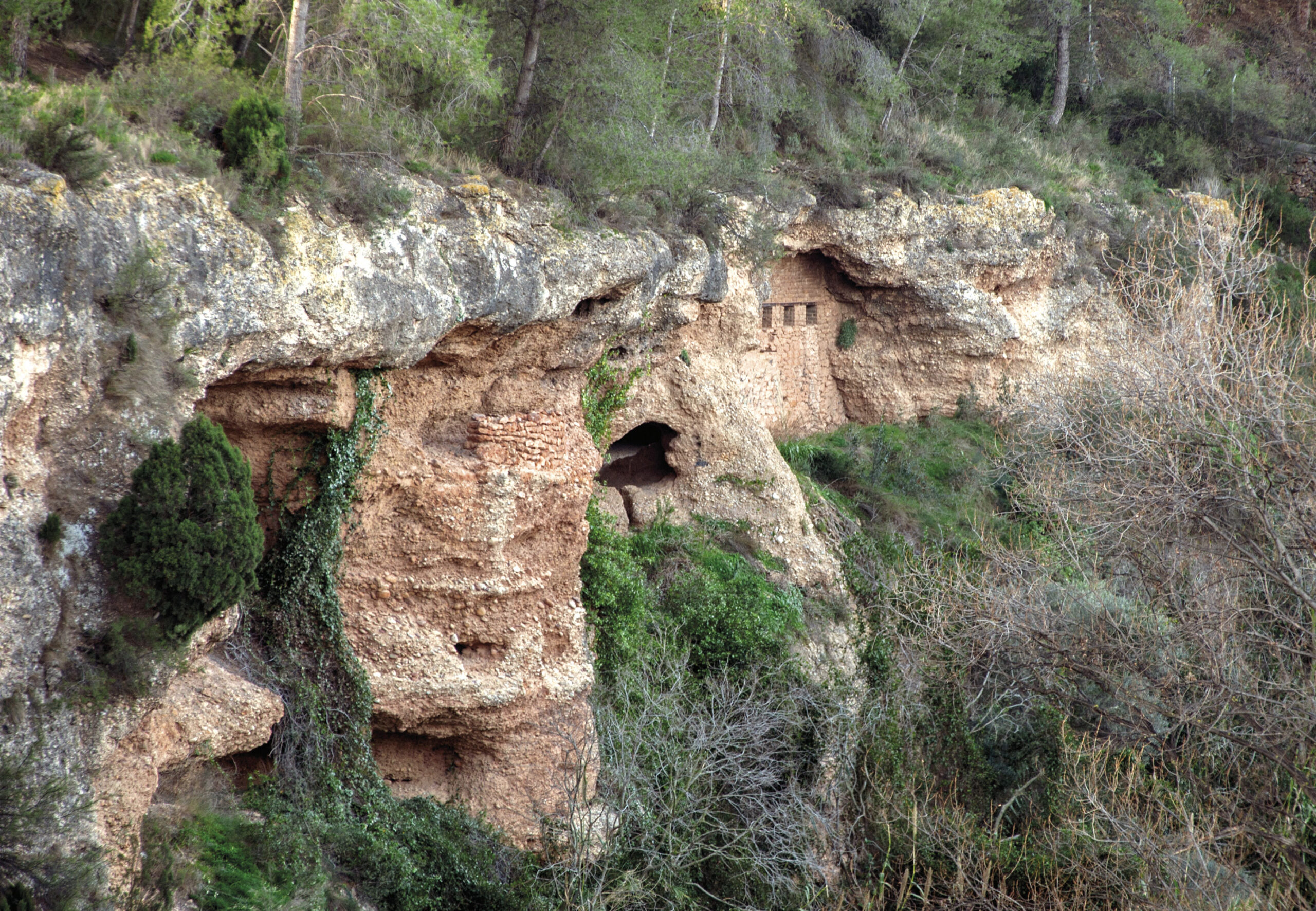 Guerra Civil en Vila-real. La Cueva del Oso, refugio y nido de ametralladoras (1938) en los cortados del río Millars, Vila-real (Castellón). España.