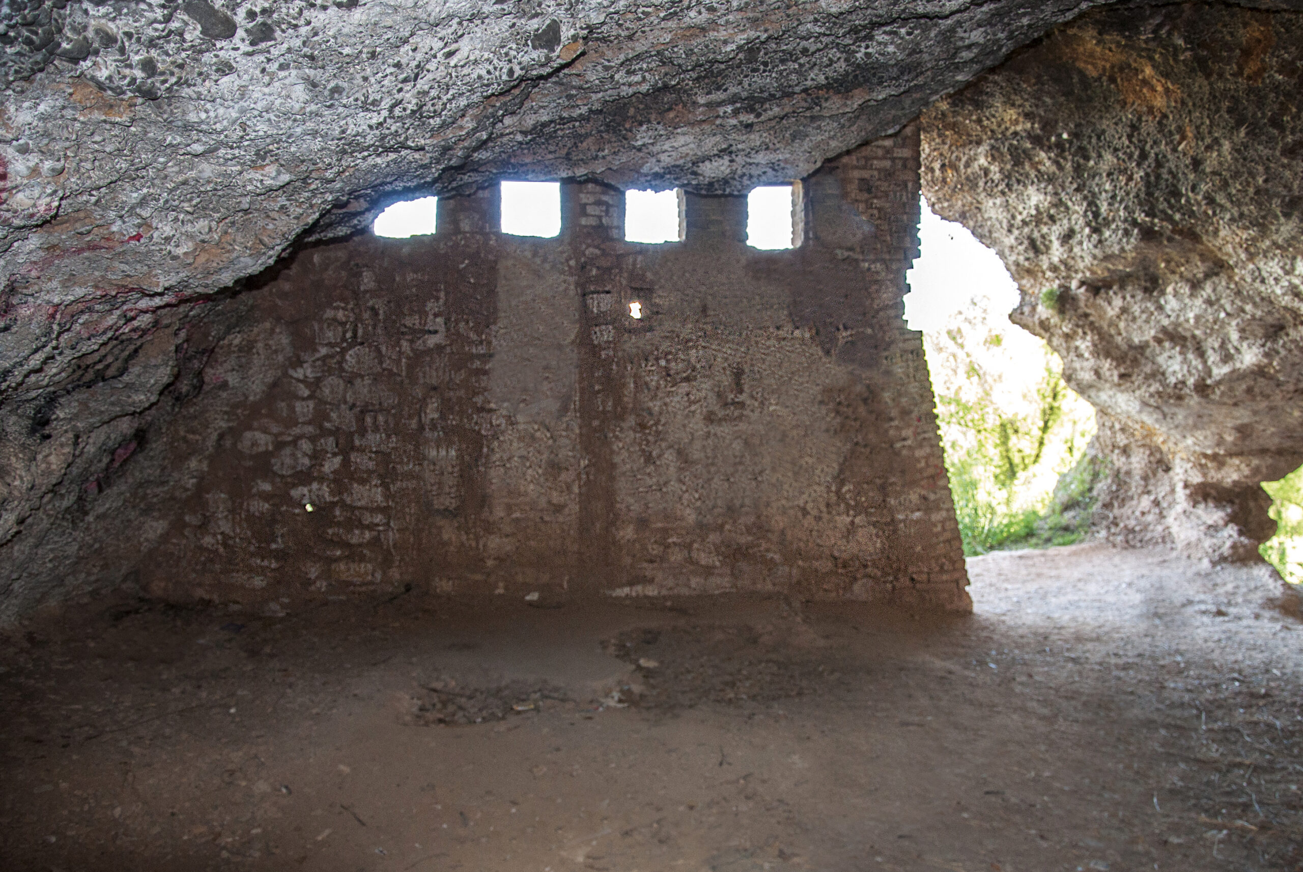 Guerra Civil en Vila-real. La Cueva del Oso (interior), refugio y nido de ametralladoras (1938) en los cortados del río Millars, Vila-real (Castellón). España.