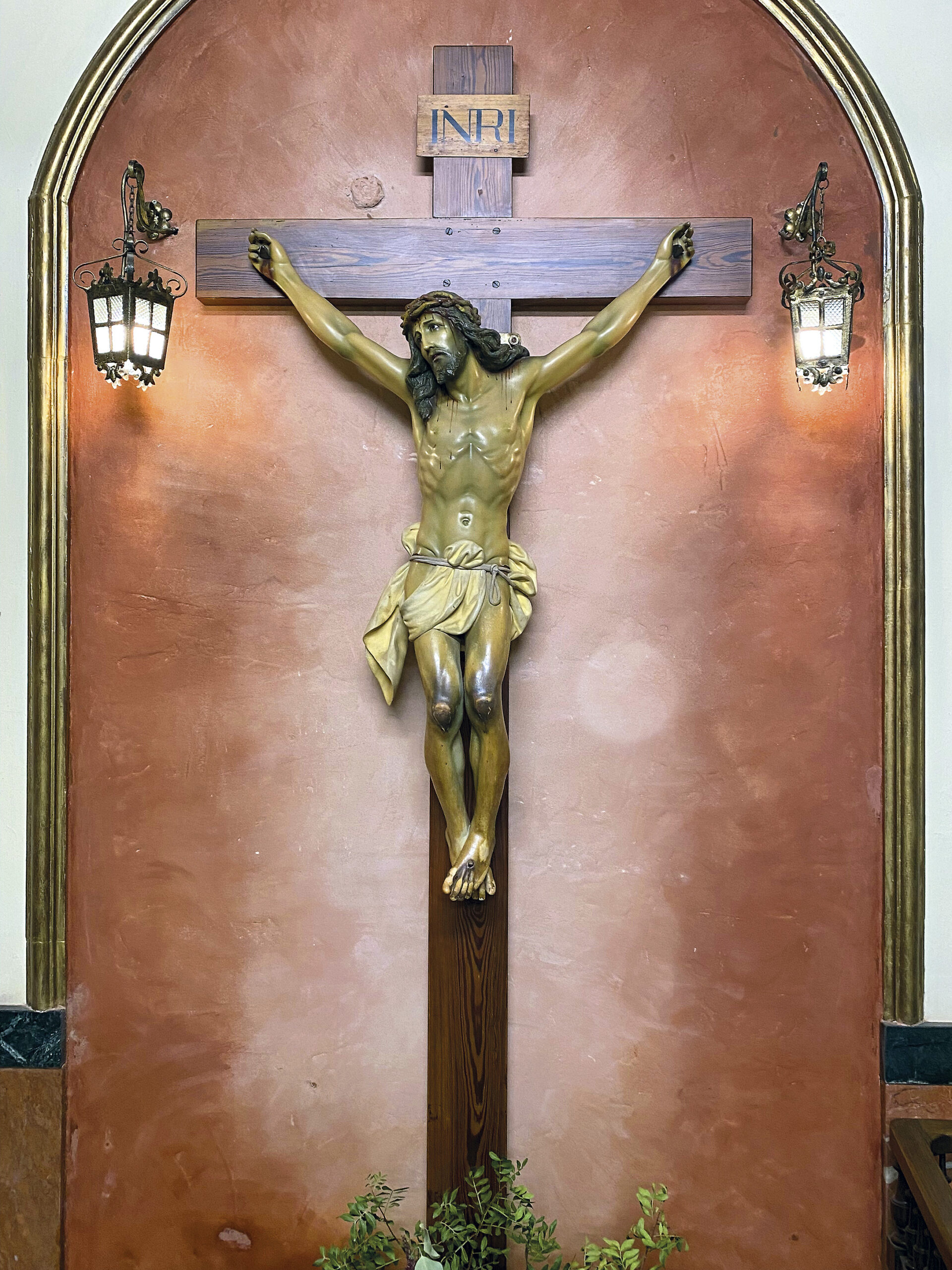 Iglesia de los Carmelitas. Cristo crucificado. Arte Cristiano, imaginería de Olot.