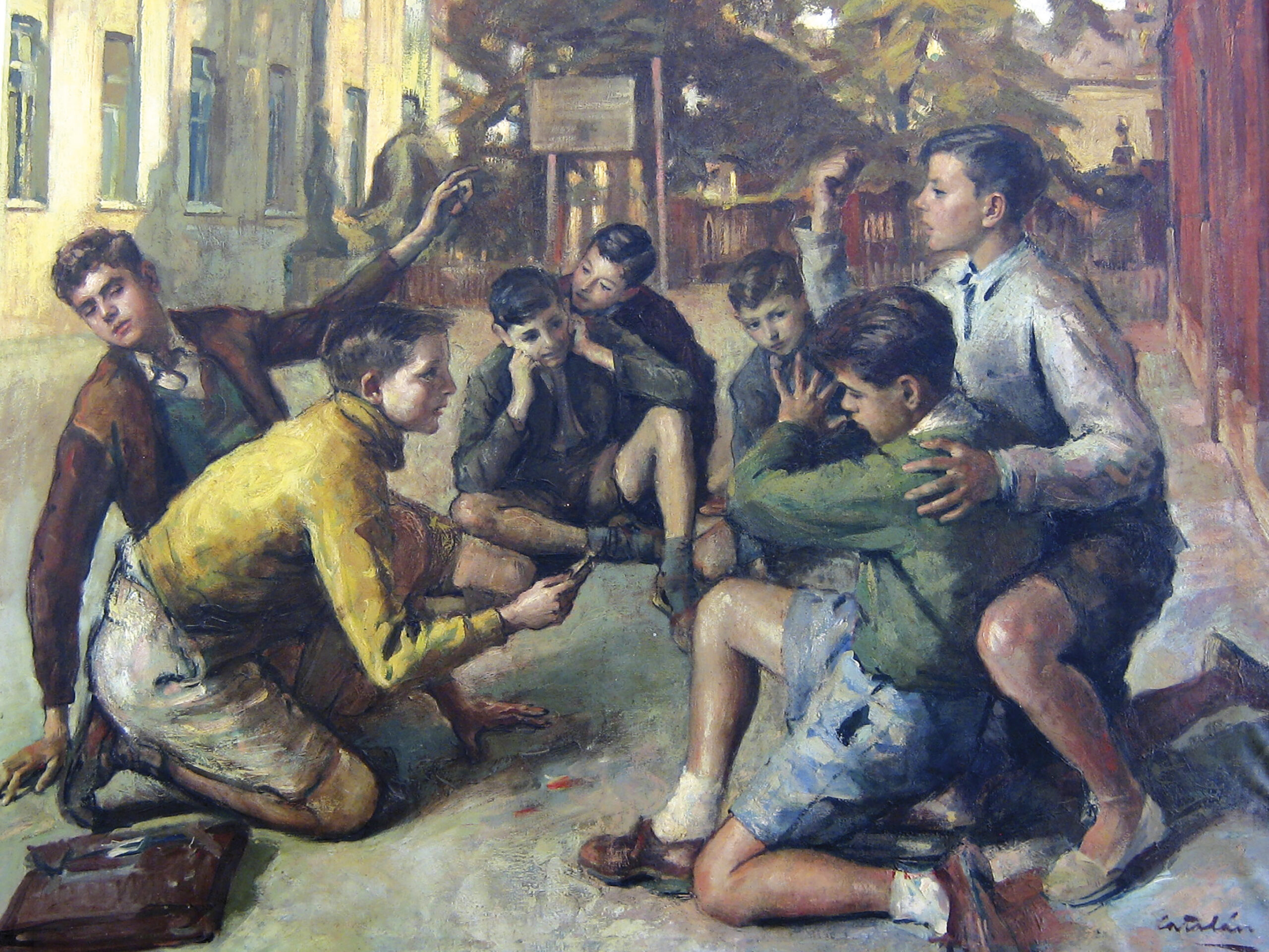 Fundación Flors. Niños jugando a la salida del colegio. Ramón Catalán, 1967. Colegio Fundación Flors.