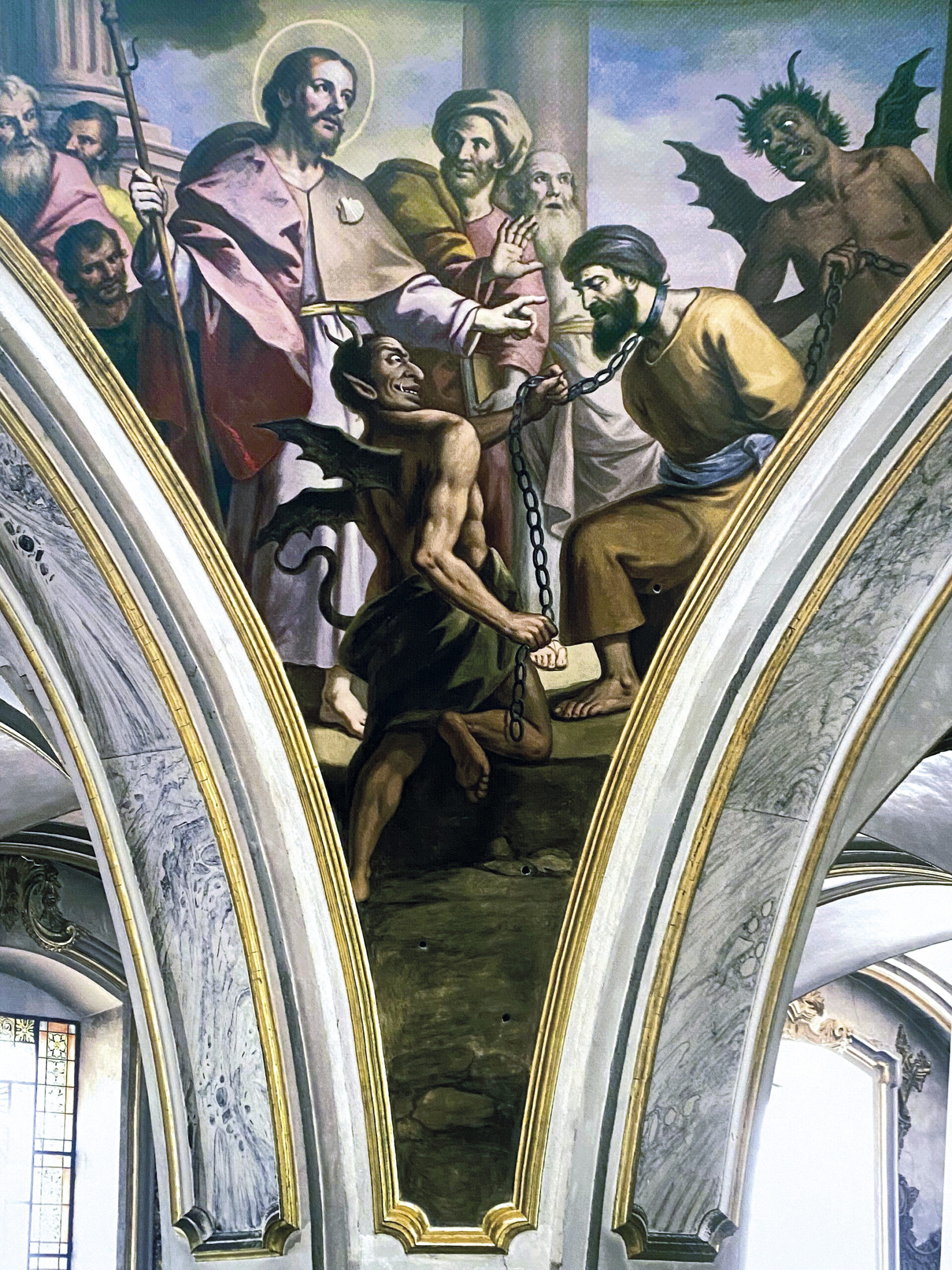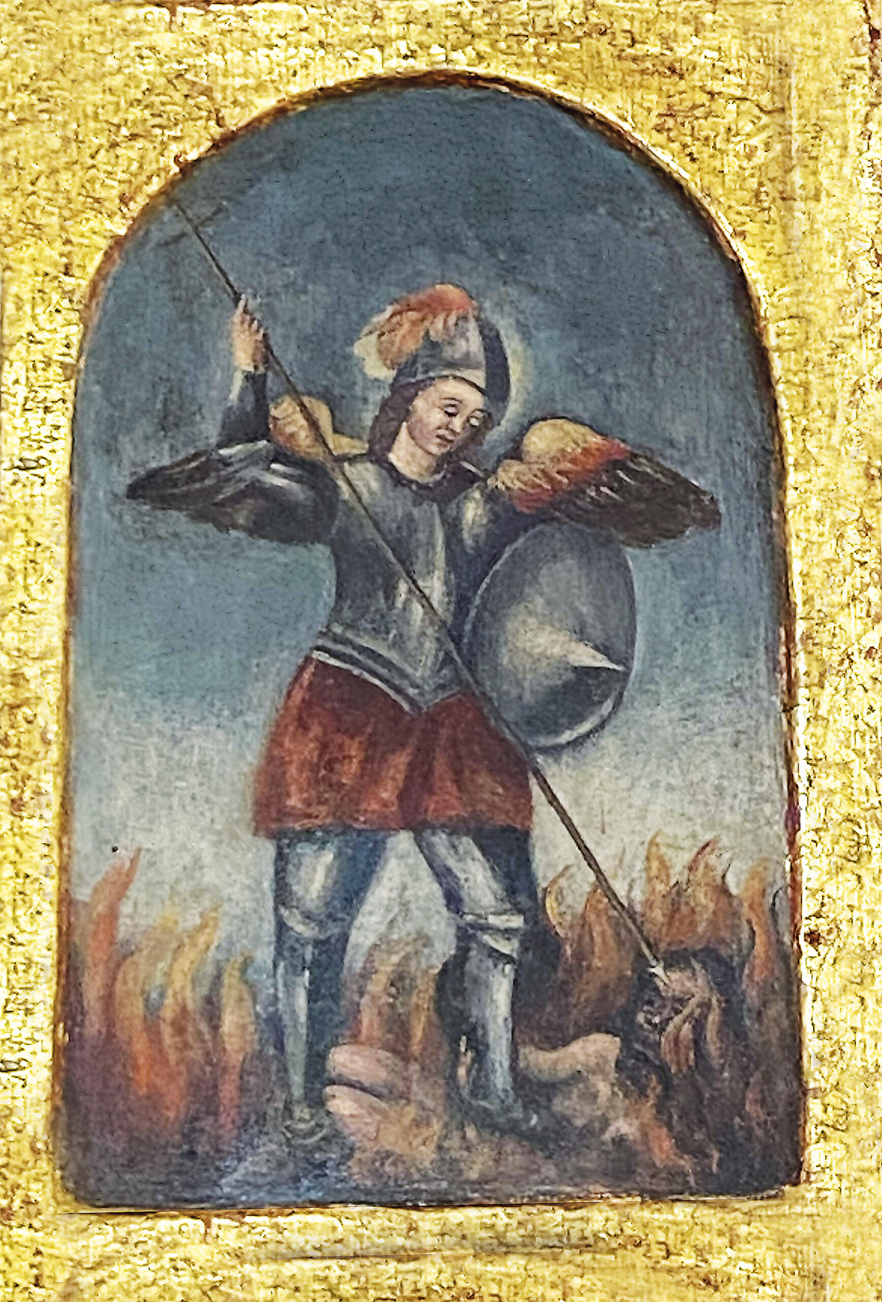 Iglesia Conventual del Carmen, Padres Franciscanos. San Miguel Arcángel derrotando a Satanás, obra anónima sin datación.