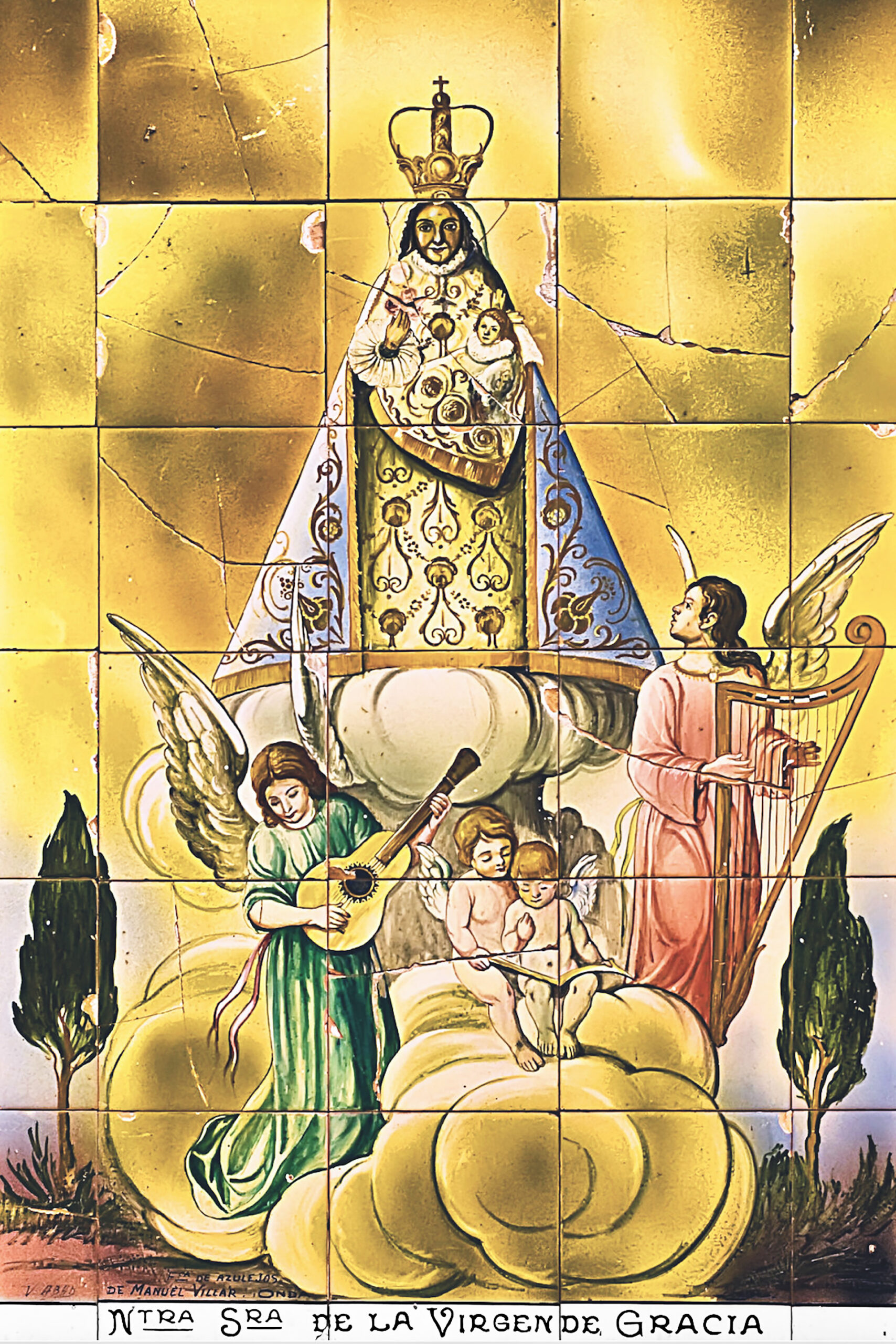 Nuestra Señora de la Virgen de Gracia. Vicente Abad, 1944. Mural situado en la fachada de la Ermita y, después, en la del Albergue. Actualmente almacenado para su restauración.
