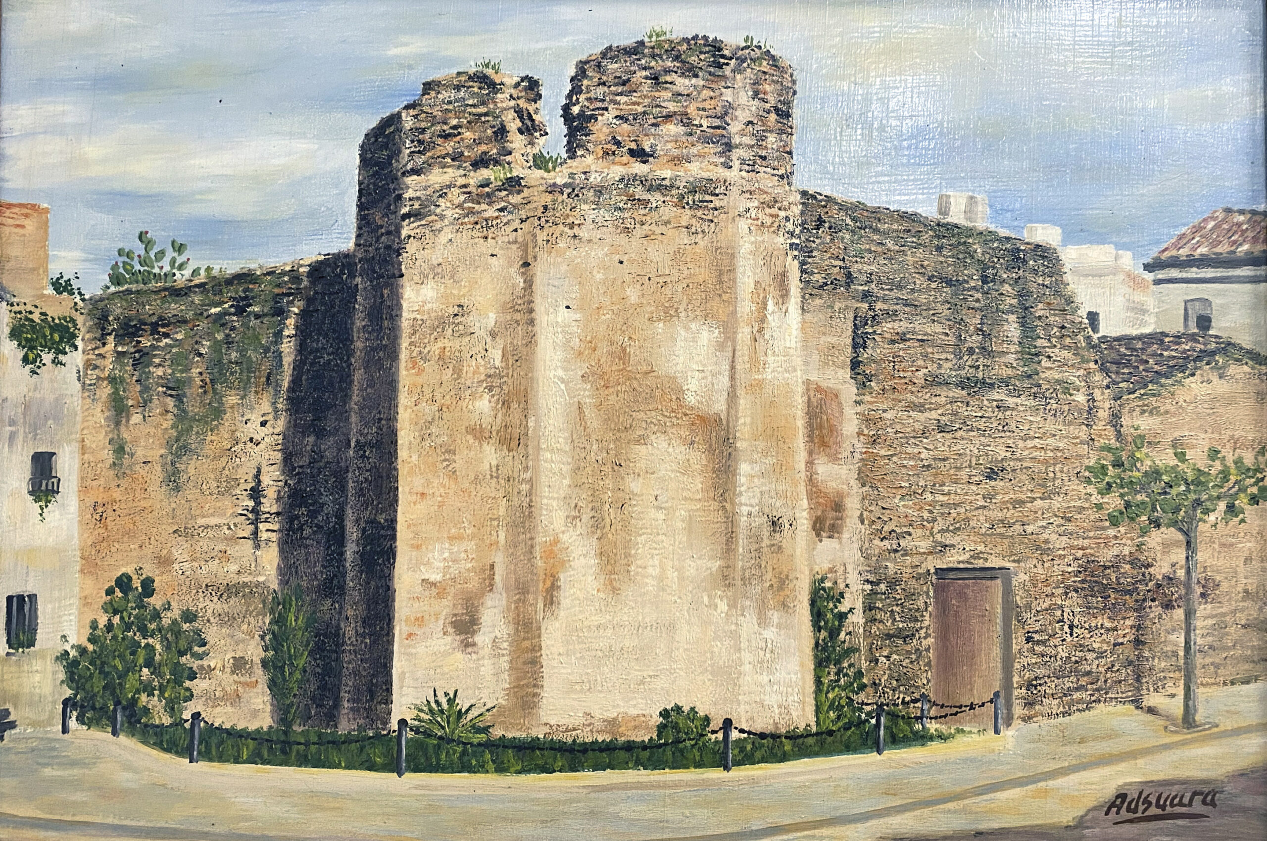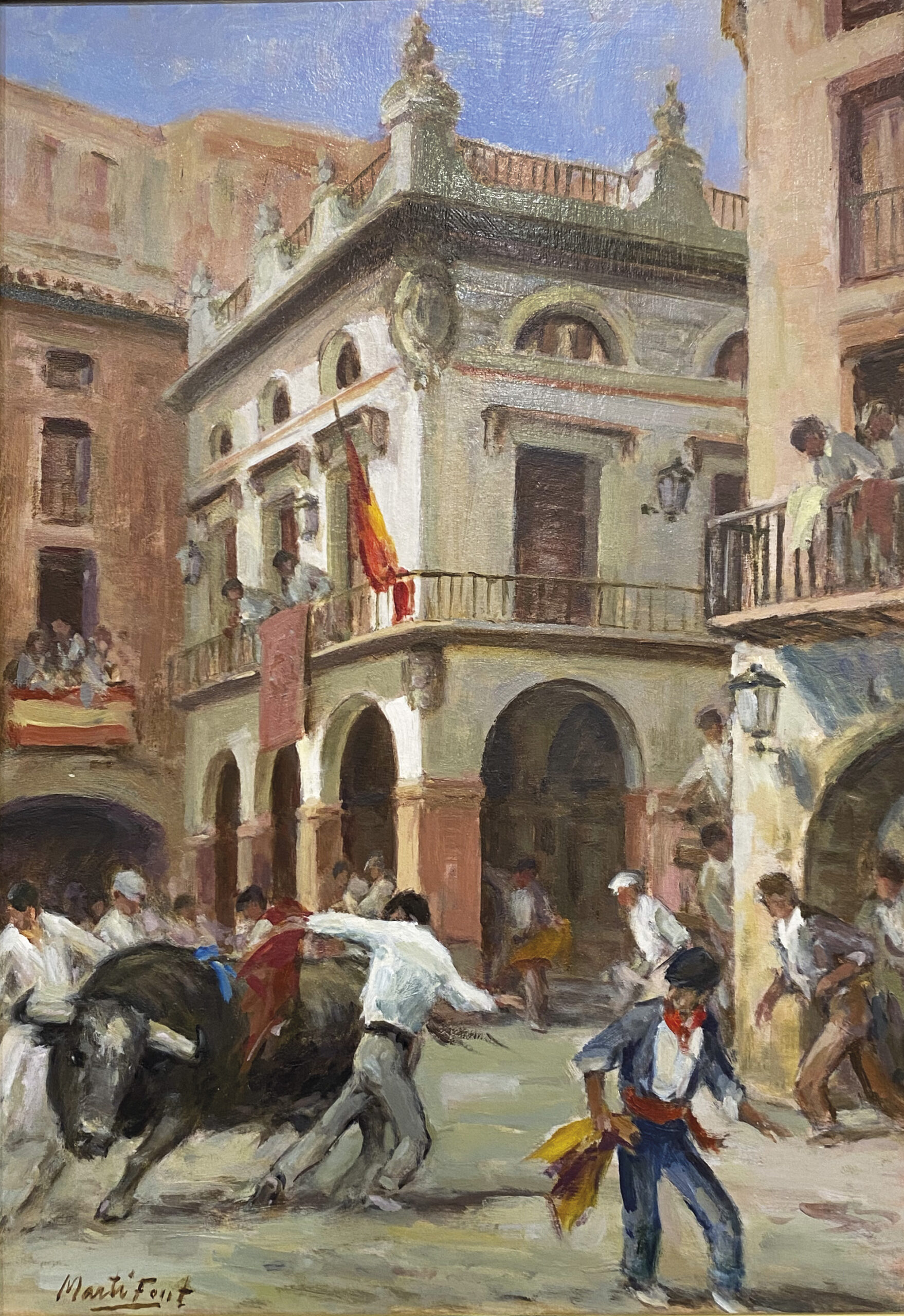 Ayuntamiento de Villarreal y convento de las Dominicas, feria de Santa Catalina en los años 50, de Juan Bautista Llorens Bort. Exposición Fundació Caixa Rural Vila-real, 2023.