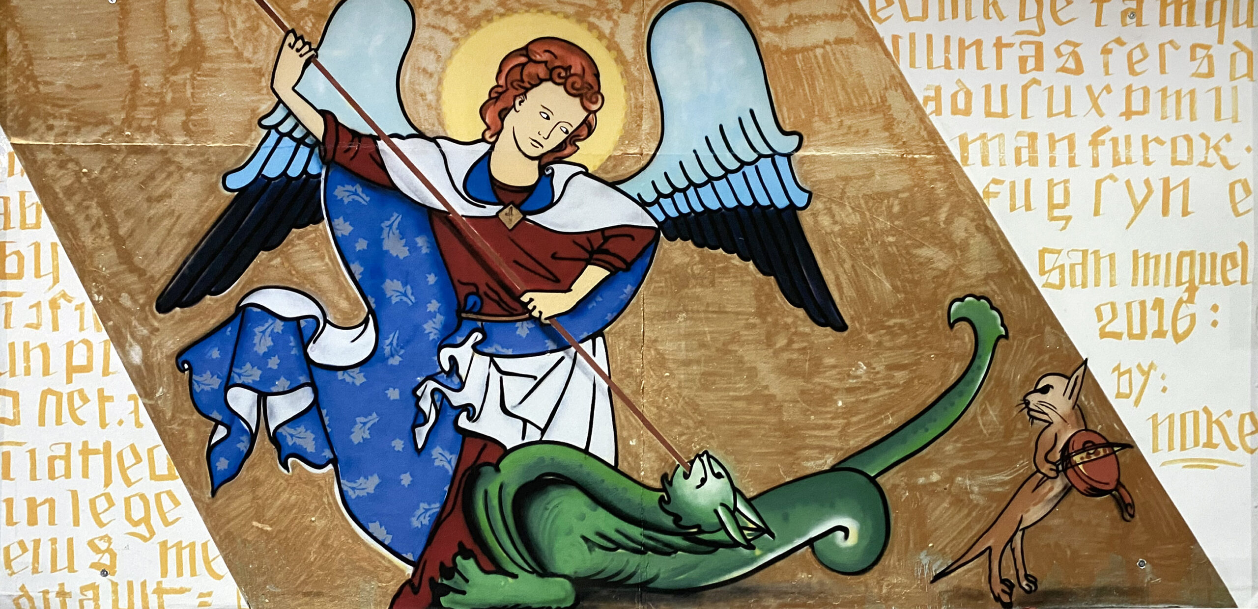 Barrios y fiestas. Fiestas de San Miguel, mural de Noke (2016).