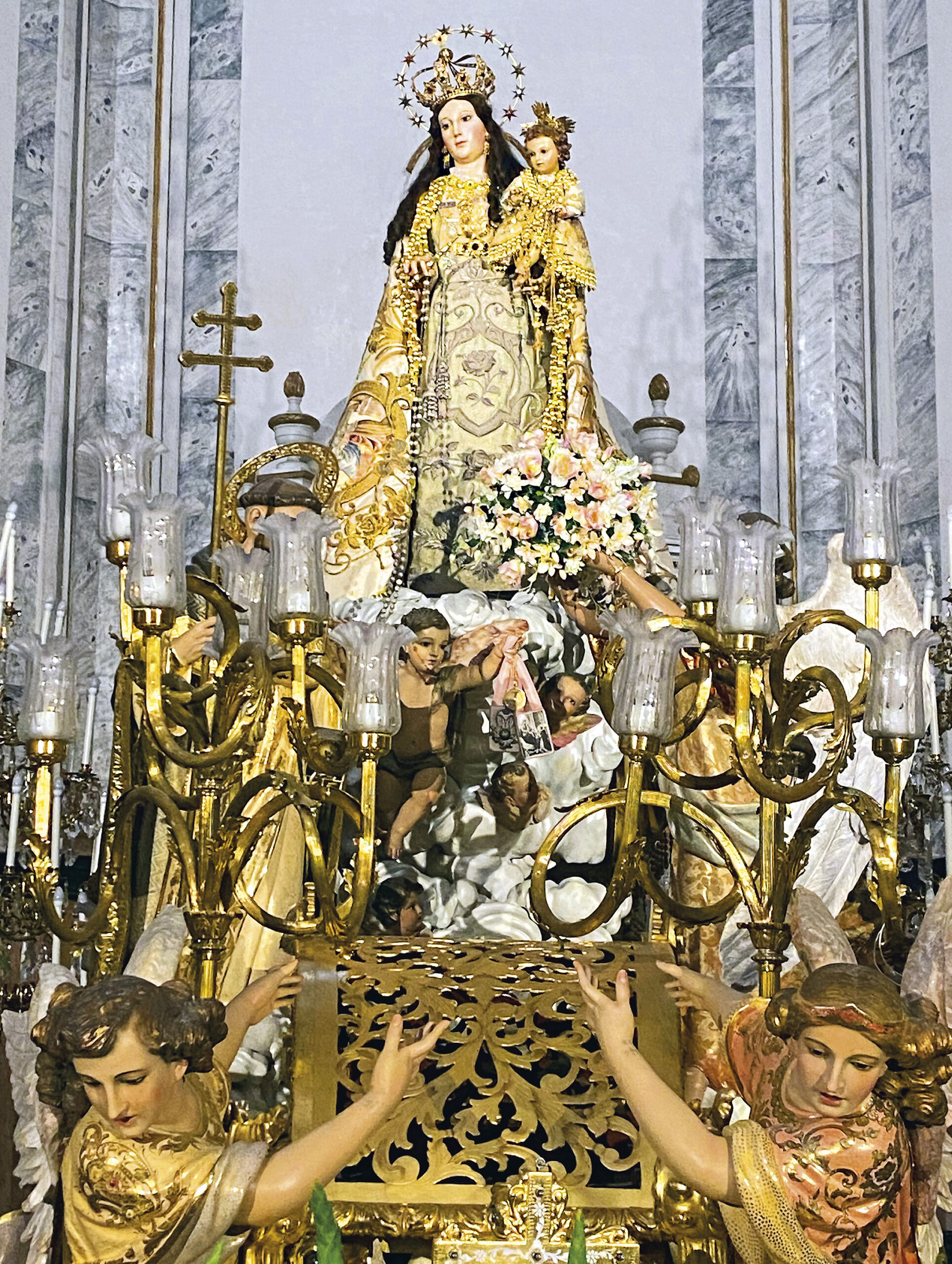 Arciprestal San Jaime. Virgen del Rosario. José María Ponsoda se encargó, en 1945, de restituir la imagen y la carroza.