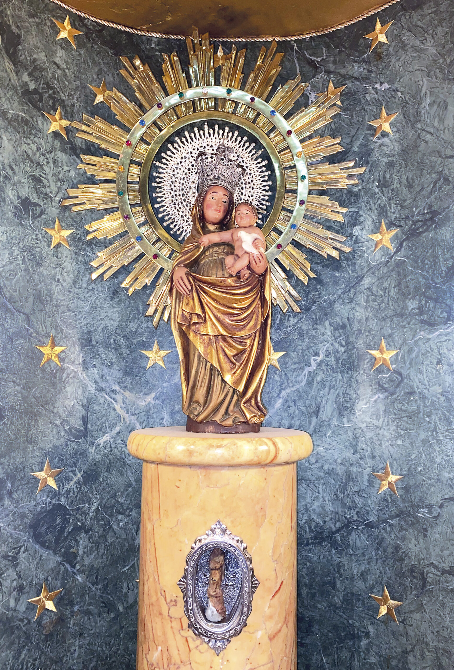 Capilla Virgen del Pilar. Virgen del Pilar y, en el pilar, Virgencita Hallada y Salvada.